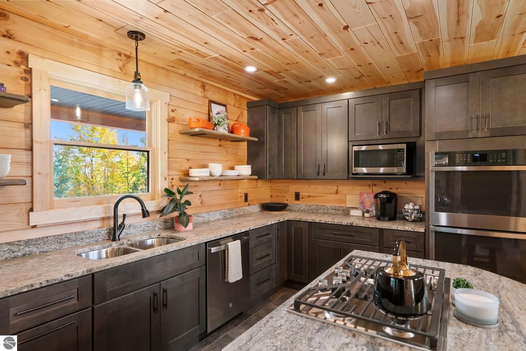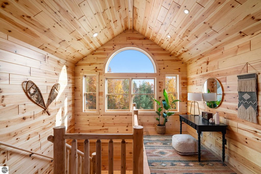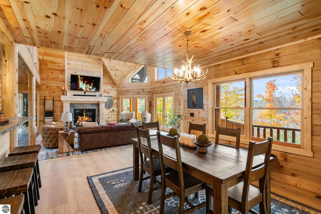 Built to encompass the "Up North" lifestyle, this 2025 custom built log cabin home expertly balances design & grandeur with function & feel. Pure Michigan serenity is discovered through open concept, main floor living with towering vaulted ceilings and walls of windows... beauty shines on every surface and through every window. Just two miles from The Highlands and Nubs Nob, two of Michigan's premier ski resorts, this location offers year-round recreation at its finest. Spend your winters skiing, snowboarding, or exploring miles of scenic snowmobile trails, then return home to unwind by the fire under soaring vaulted ceilings and the warm glow of knotty pine interiors. When the snow melts, if you are not out enjoying the turquoise waters of Lake Michigan, chances are you are enjoying award-winning golf courses, fantastic restaurants, and boutique shopping in downtown Harbor Springs. You can easily find yourself doing all the same in other favorite surrounding cities like Petoskey, Bay Harbor and Charlevoix. The elevated setting offers seasonal views of The Highlands along with a sense of peace and privacy. Inside, the home impresses with spacious open-concept living, stunning detail, a fabulous primary suite along with 2 guest en-suites, ideal for hosting friends and family. Whether it's après-ski gatherings, summer evenings on the deck, or crisp autumn mornings among the trees, this property is the ultimate expression of the Up North lifestyle. When you're not here, it's sure to be one of Harbor Springs most sought-after stays!
