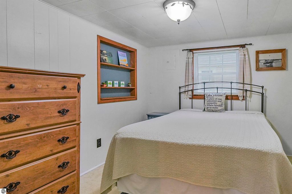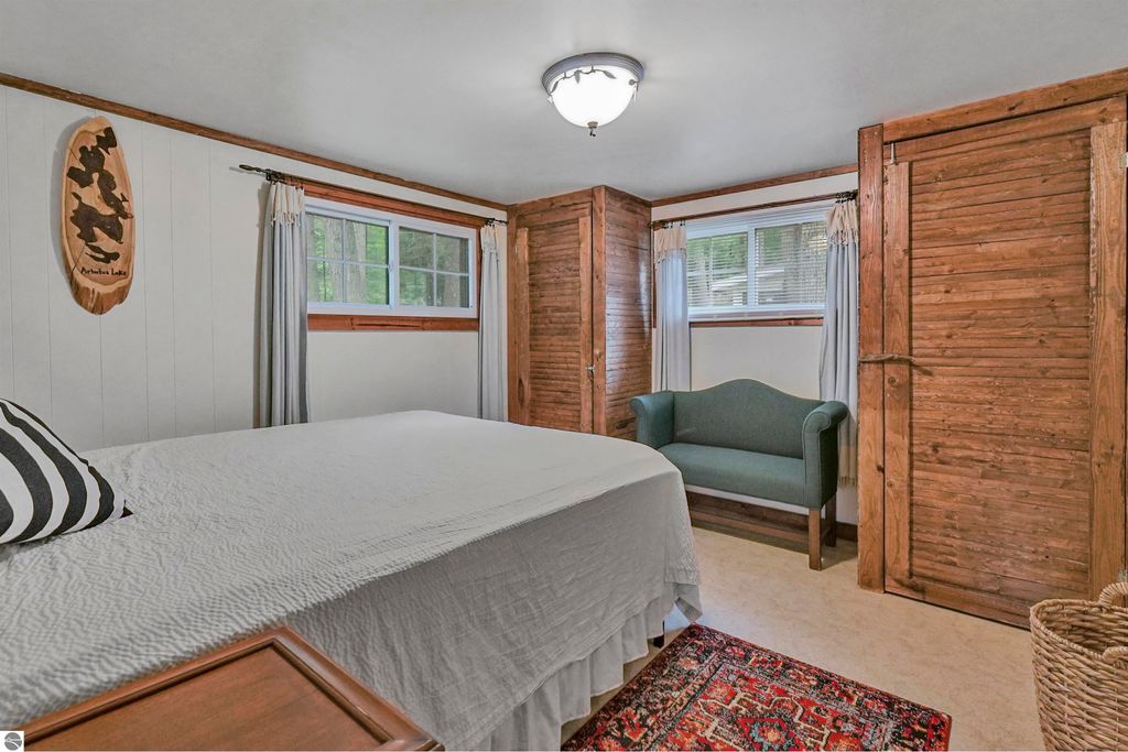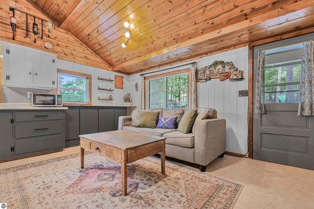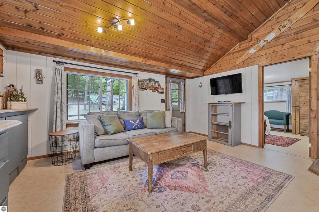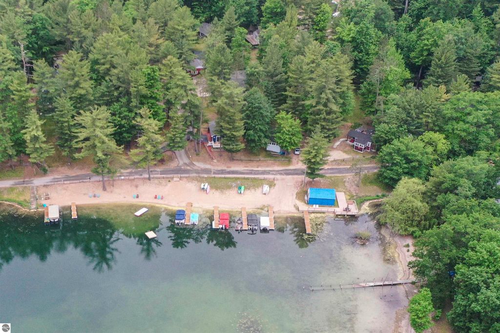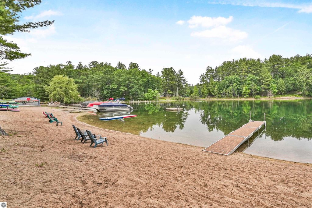 Located in a resort-style community on beautiful Arbutus Lake, this charming cottage offers shared frontage with a sprawling sandy beach, docking, a shared boathouse, shared pole barn and a lakeside deck for endless summer enjoyment. The grounds also include a playground, making it a great spot for all ages. Inside, the cottage is full of Up North character with beamed cathedral ceilings, a cozy gas stove, and inviting living spaces. A large deck and firepit area provide the perfect setting for evening gatherings and relaxing outdoors. This is a rare chance to enjoy lake living with the benefits of shared amenities and low-maintenance ownership.