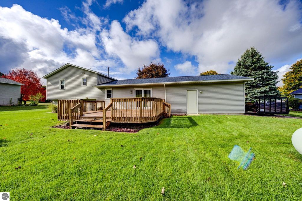 This well-maintained 4-bedroom, 1.5-bath home offers comfortable living in a peaceful neighborhood setting with outstanding proximity to Traverse City amenities. The spacious main level features an open layout flowing from the kitchen and dining area"”with hardwood flooring"”to sliding doors that lead to a large outdoor deck and backyard, perfect for entertaining or relaxing around the firepit. The upper level includes a generous primary bedroom, while the finished lower level provides additional living space ideal for a family room, home office, or play area. An attached two-car garage adds convenience and storage. Recent updates include a new roof and furnace in 2025, and the home is equipped with a generator hookup. Natural gas is available at the street. Ideally located on the west side of Traverse City, this property is just minutes from downtown, approximately 4 miles from Tom's West Bay, 10 minutes from Munson Medical Center, and close to local parks, beaches, and playgrounds. The home is also within the Traverse City Area Public Schools district. Enjoy easy access to both Traverse City and Leelanau County shopping, dining, trails, and recreation"”all within a short drive.