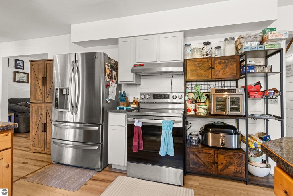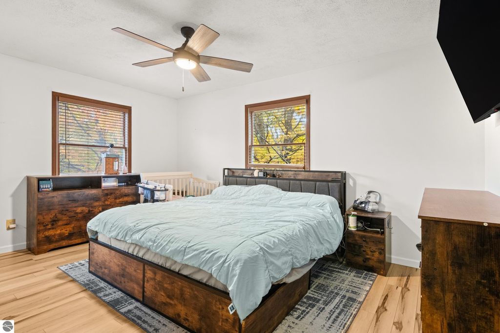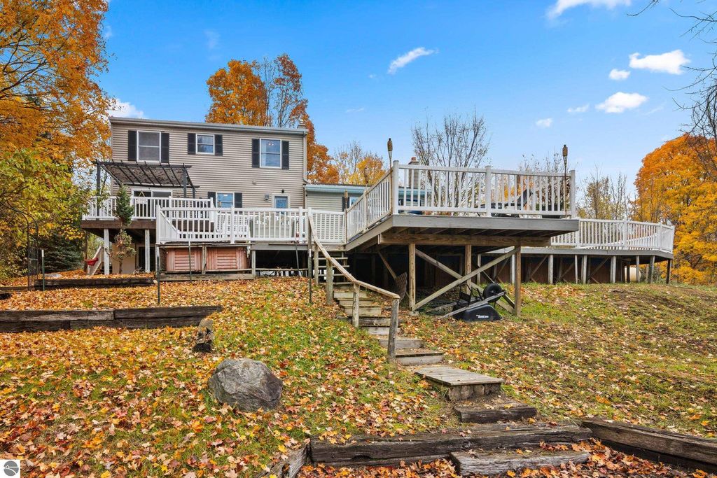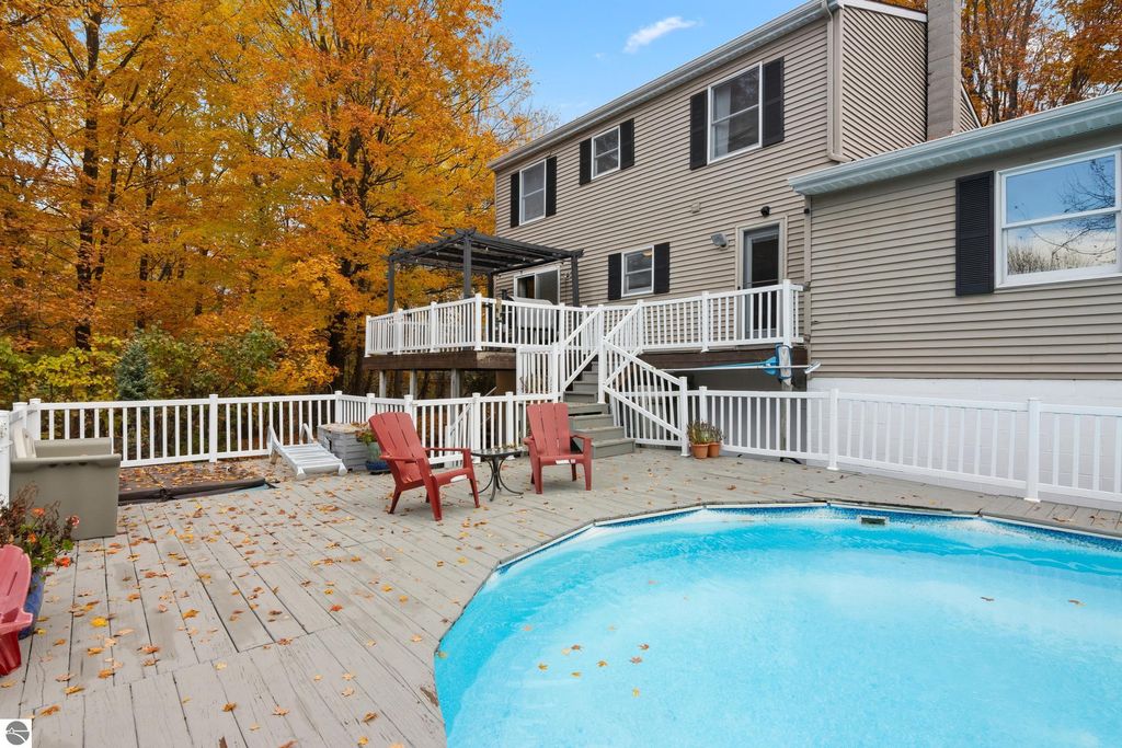 Discover the perfect blend of comfort, style, and location with this 4-bedroom, 2.5-bath home nestled on a picturesque wooded lot in Traverse City. With 1,875 sq ft of living space and a partially finished basement, this home offers both functionality and warmth. The inviting main level features an open-concept kitchen with brand-new cabinets and a stylish hood vent (installed 2025), complemented by stainless steel appliances and an easy flow into the dining and living areas. A wood stove adds cozy charm to the living room, while the mudroom provides practical everyday convenience. Upstairs, all four bedrooms are thoughtfully situated together, each spacious and designed for privacy and comfort. The private wooded backyard is an oasis "” complete with a beautiful pool and expansive pool deck area, perfect for entertaining or relaxing in a serene natural setting. A covered front porch welcomes you home and sets the tone for peaceful living. Ideally located with convenient access to Grand Traverse Bays and downtown Traverse City, this home combines a tranquil retreat-like setting with the best of local amenities, dining, and recreation just minutes away. A wonderful opportunity to enjoy the Traverse City lifestyle "” surrounded by nature, yet close to everything.
