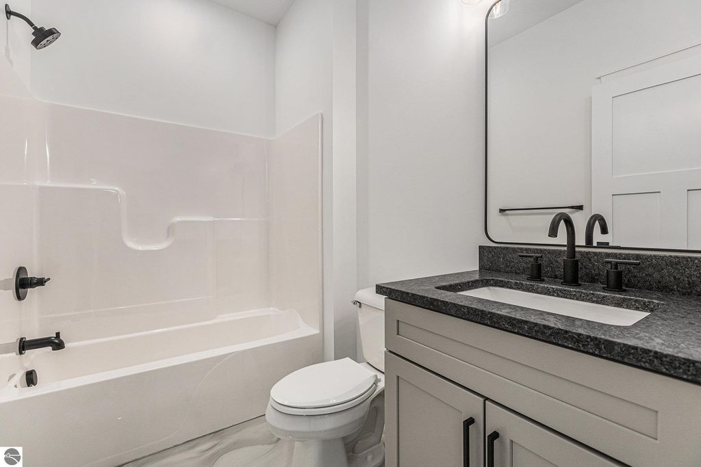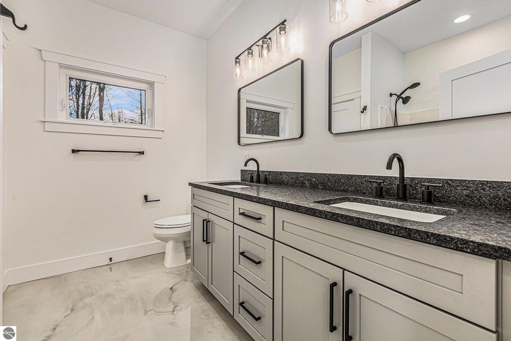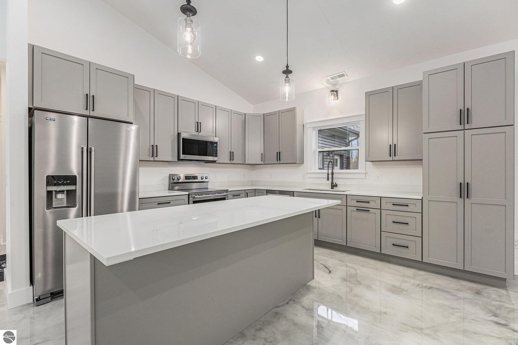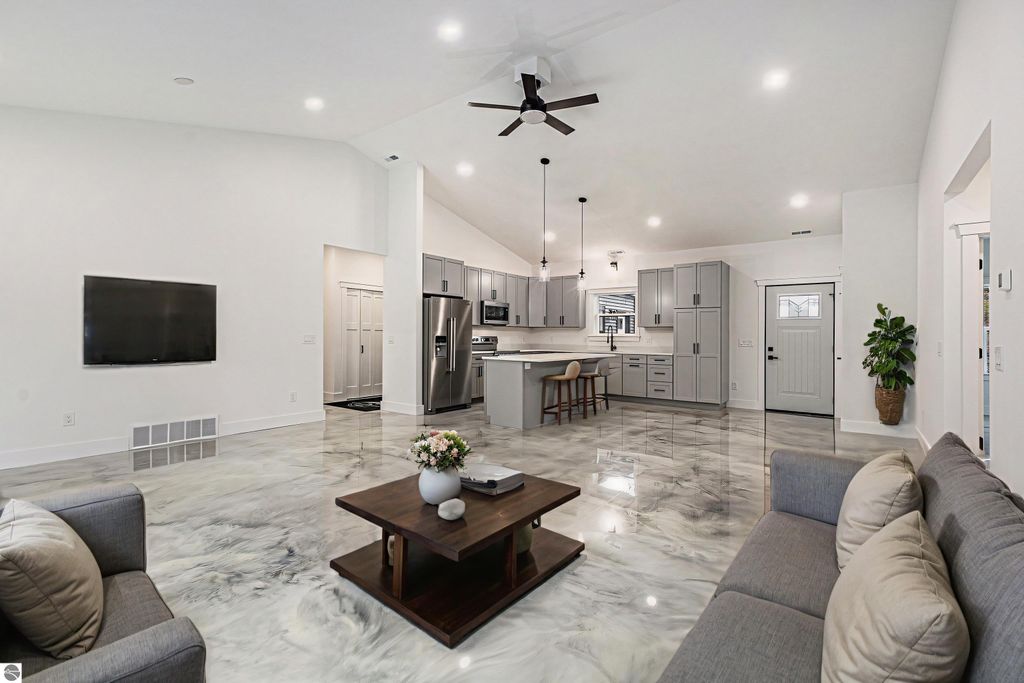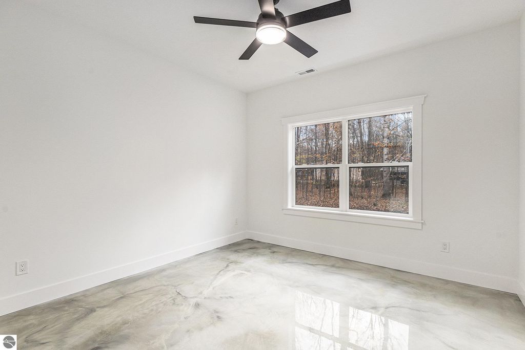 Built in 2025, this custom main-floor living home sits on a private lot in the Crimson King Subdivision between Lake Ann and Interlochen. Designed for comfort and efficiency, it features radiant in-floor heat, thermal mass construction, an ultra-efficient natural gas boiler, and forced-air A/C. The heated slab is finished with durable metallic epoxy throughout. The open layout includes a quality-built kitchen with custom soft-close cabinetry, maple dovetail drawers, quartz countertops, and Maytag appliances. Three comfortable bedrooms include a private primary suite, with bathrooms and laundry finished in Granite Steel Rock. A large exposed aggregate patio offers peaceful outdoor living surrounded by mature trees. The oversized garage provides excellent storage and workspace. The subdivision adds to the appeal with a community park, ball field, and trails. Located near Lake Dubonnet State Forest and minutes from golf, skiing, and the amenities of Lake Ann and Interlochen, this home delivers efficiency, quality, and a welcoming community lifestyle.