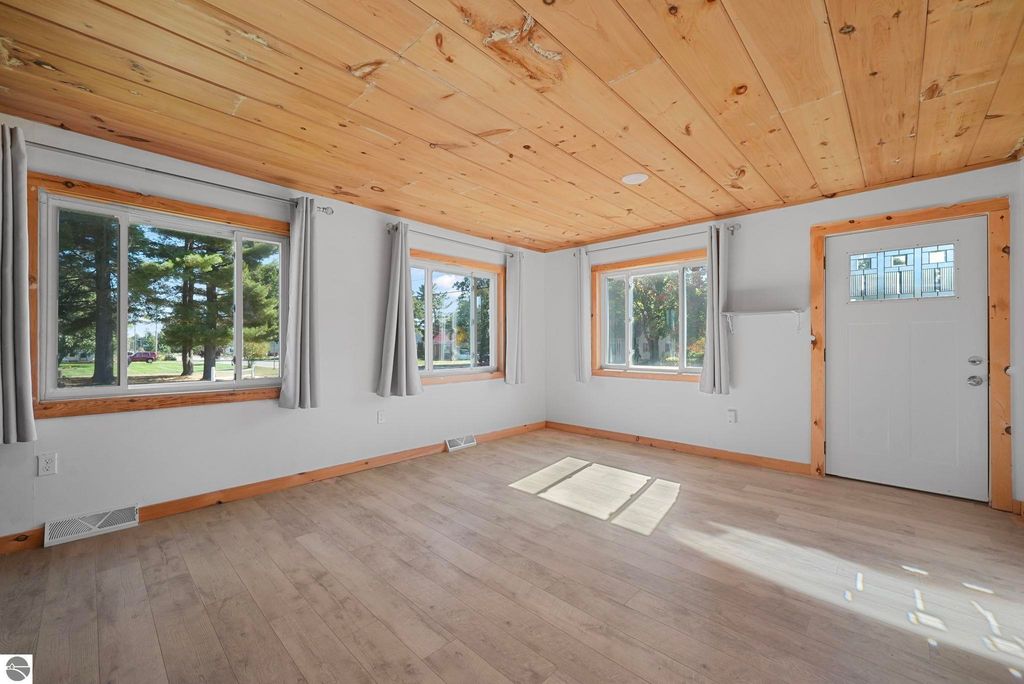 Experience the ease of main floor living in this charming cottage-style home in the heart of Cadillac. With city water, sewer, and natural gas, this property offers the convenience of full city services while maintaining a comfortable neighborhood setting. The open-concept layout blends the living, dining, and kitchen areas, featuring wood plank ceilings, modern flooring, and plenty of natural light. The kitchen offers generous cabinet space, a center island, and updated finishes, making everyday living simple and efficient. Step outside to enjoy a large double-fenced yard, perfect for pets, gardening, or outdoor entertaining. An attached one-car garage provides extra convenience and keeps you out of the elements year-round, while the basement serves as a practical storage area. Located just minutes from downtown Cadillac, Lake Cadillac, and nearby parks, trails, and the boat launch, this home is ideal for anyone seeking a full-time residence, investment property, or seasonal retreat. All appliances and a one year home warranty included in the sale! Schedule your showing today and see all this property has to offer!