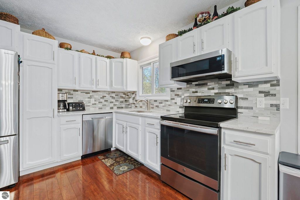 Popular East side location!! This adorable ranch is boasting with modern updates throughout making it low maintenance and move in ready! (full updates list can be found under docs) Open & Efficient concept with a bright kitchen offering stainless appliances, smart granite countertops and a stylish stone backsplash. Lower level offers a ton of added space for all the "get together" overflow and the storage is amazing! The backyard is a summer haven with a party sized deck, Natural gas grill, firepit, and lots of mature flowering bushes. New Furnace and AC system installed in 2023 making utility bills super reasonable! Within walking distance to Holiday Woodland Preserve and the VASA trail. Close to restaurants, beaches, The Horse Shows at Flintfields, Turtle Creek Casino, and downtown Traverse City. Come visit and make this terrific opportunity your reality!