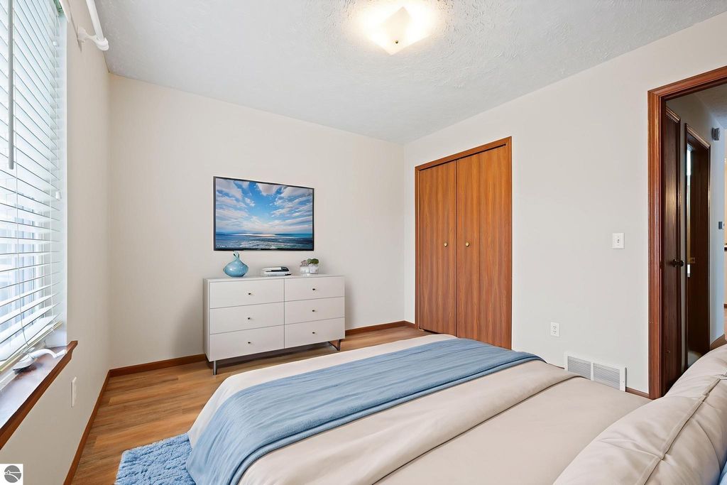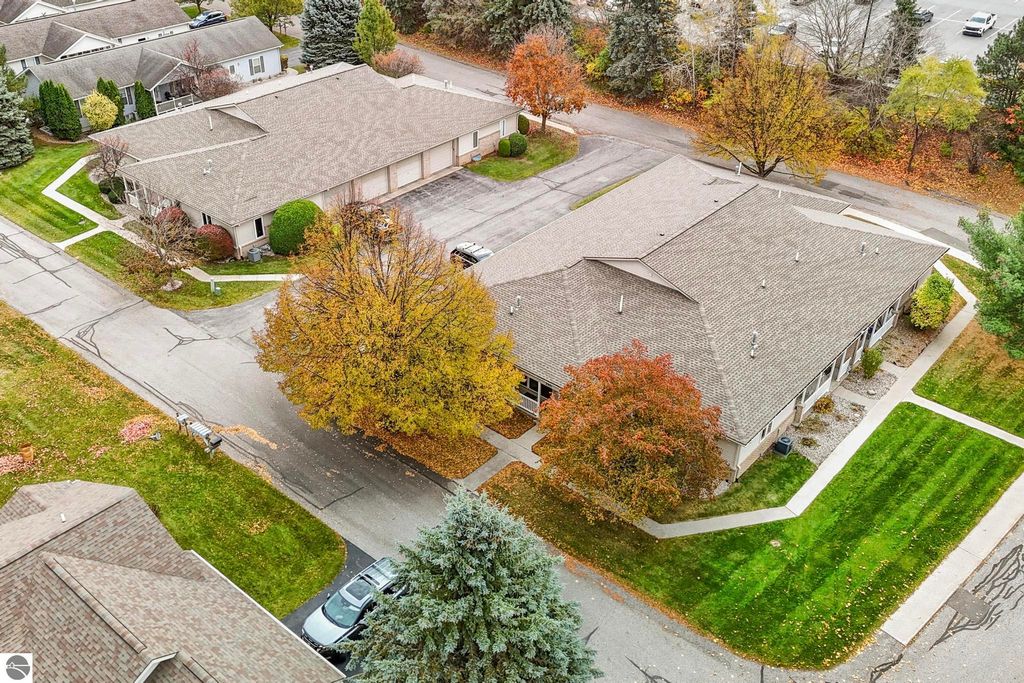 Welcome home to this beautifully maintained 2-bed, 2-bath condo offering bright, open living spaces and a thoughtful layout that's both inviting and functional. Natural light fills the main living area through large sliding doors leading to a covered front porch, perfect for morning coffee or a quiet moment in the fresh air. The kitchen flows easily into the dining and living area, creating an effortless space for everyday living or entertaining. Freshly updated with new paint and flooring, this home feels crisp, clean, welcoming, and ready for your personal touch. A full basement provides plenty of room for storage, hobbies, or future finishing creating flexibility for any lifestyle. Enjoy the convenience of single-level living with main-floor laundry and an attached garage, located in a peaceful neighborhood just steps from shopping, dining, and medical services. This condo delivers the best of easy living in a desirable Traverse City setting.