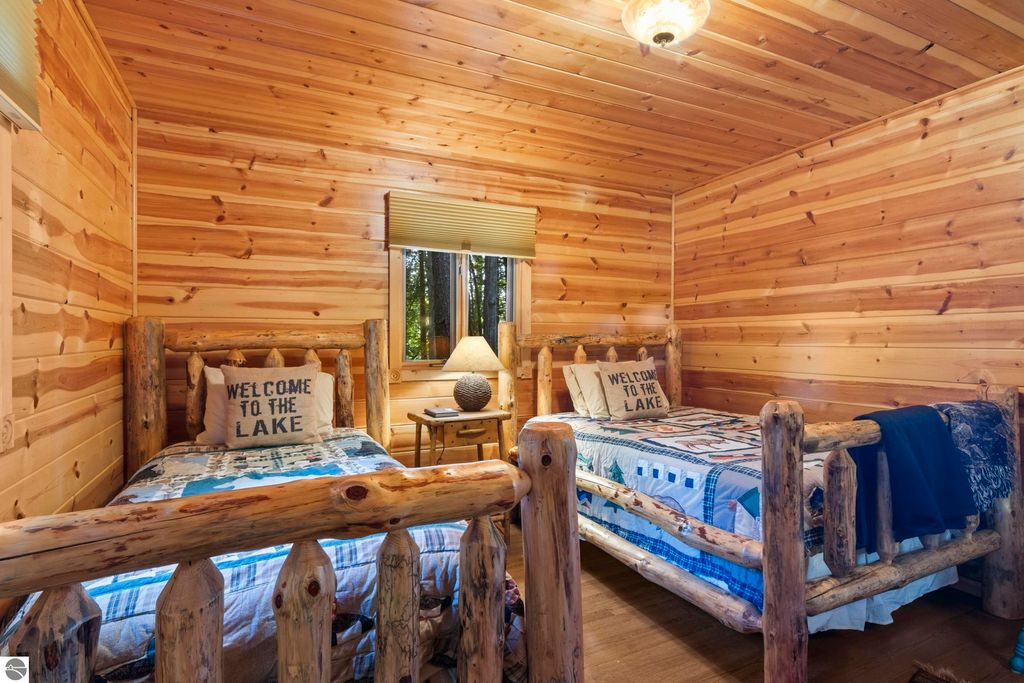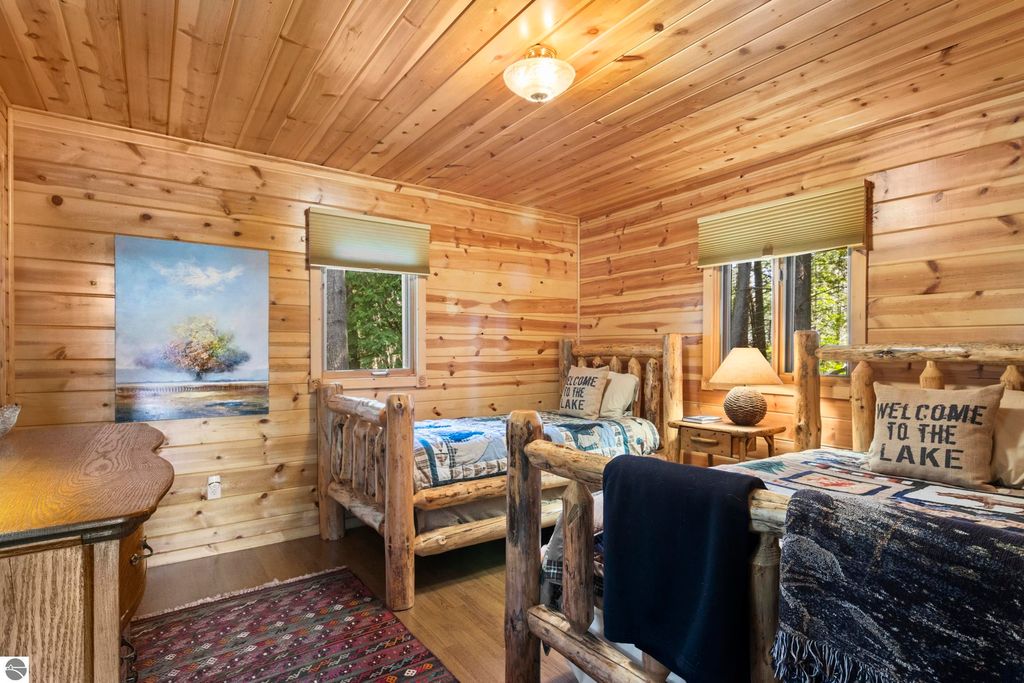 Discover the ultimate Up North escape with this beautifully maintained log-sided home on coveted Six Mile Lake"”part of Northern Michigan's highly desirable Chain of Lakes. Just minutes from East Jordan, Central Lake, and Bellaire, this property blends comfort, convenience, and classic lake life charm. Set on a generous 0.5-acre lot with 109 feet of private lake frontage, the home offers peaceful sunset views and plenty of outdoor space"”including room to add a garage. The open-concept interior features soaring vaulted ceilings and tongue-and-groove pine walls, creating a warm, inviting atmosphere throughout. Enjoy 3 spacious bedrooms, 2 full bathrooms, a mudroom with laundry tub, and a kitchen outfitted with granite countertops and modern appliances. An expansive wraparound deck and patio area provide the perfect setting for entertaining or unwinding by the water. Recent updates in 2025 include a new high-efficiency furnace, central A/C, water softener, and septic pump, offering modern comfort with peace of mind. Sold fully furnished with dock included"”just move in and start enjoying the lake life! Whether you're looking for a serene year-round residence or a low-maintenance getaway, this turnkey home offers a rare opportunity to own on one of Northern Michigan's beautiful all sports lakes!