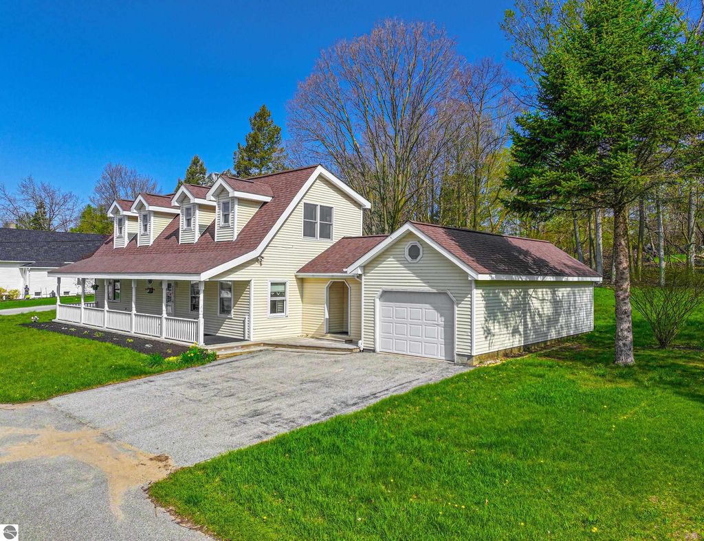 Embrace the Northern Michigan lifestyle in Onekama-Cape Cod 4-bedroom, 3-bathroom, Attached Garage home spanning 2,125 sq. ft. Around the corner from Onekama School and 2-minute walk from the tranquil waters of Portage Lake and a leisurely 10-minute stroll to Lake Michigan's sandy shores. This home is your ticket to lakeside living, offering endless opportunities for swimming, boating, hiking, golfing, and shopping, whether you're seeking a forever home, a vacation haven, or a high-demand short-term rental. The home features a sprawling floor plan with so much room to relax and enjoy on the main floor. All 4 bedrooms are on the upper level and also features the 3rd full bathroom. Outside, savor morning coffee on the oversized deck with glimpses of Portage Lake, or unwind in the backyard, a private oasis for entertaining . A one-car garage keeps your kayaks, bikes, or golf clubs ready for adventure. Families will love the 5-minute walk to Onekama Consolidated Schools, known for its tight-knit community and excellent education. Just minutes away, explore Onekama Village Park, Zosel St. Walk-in Park, or savor local flavors at The Glenwood and Lucky Dog, with downtown Onekama's charming shops and dining at your fingertips. Newer HVAC system, updated electrical. This home is poised for UpNorth living.