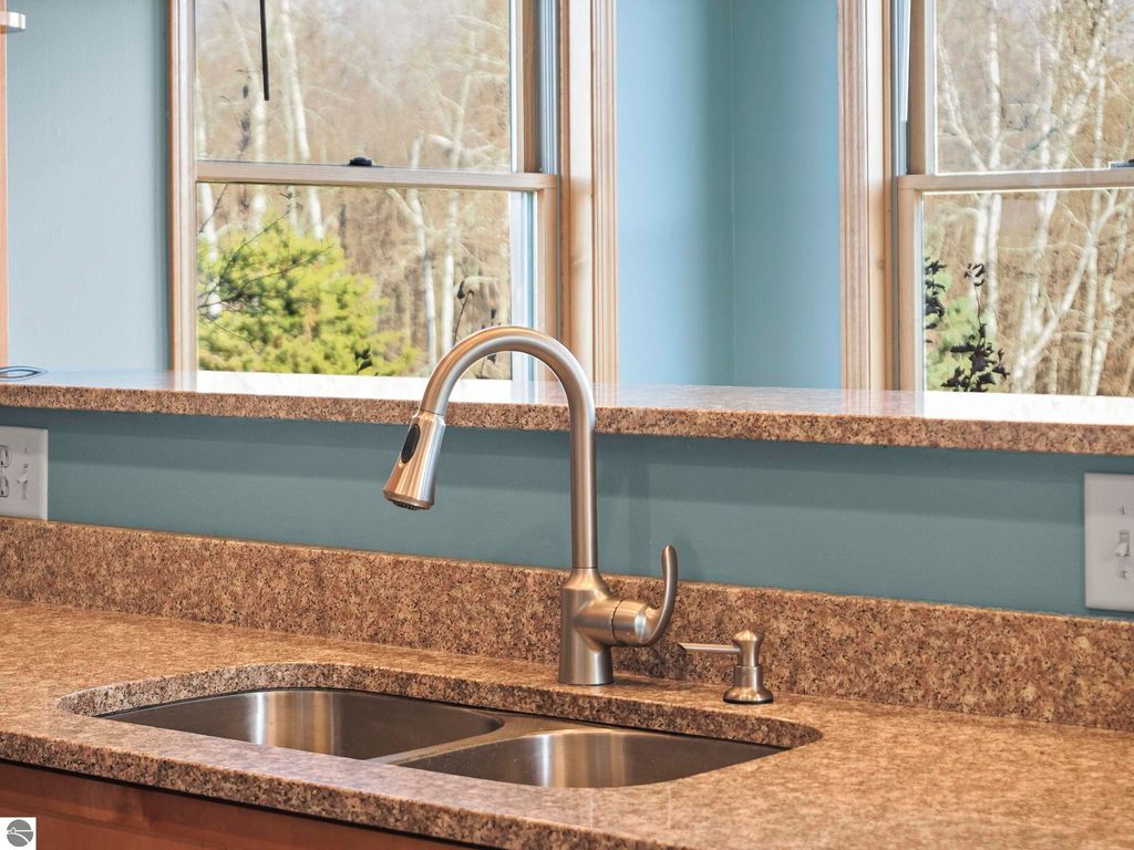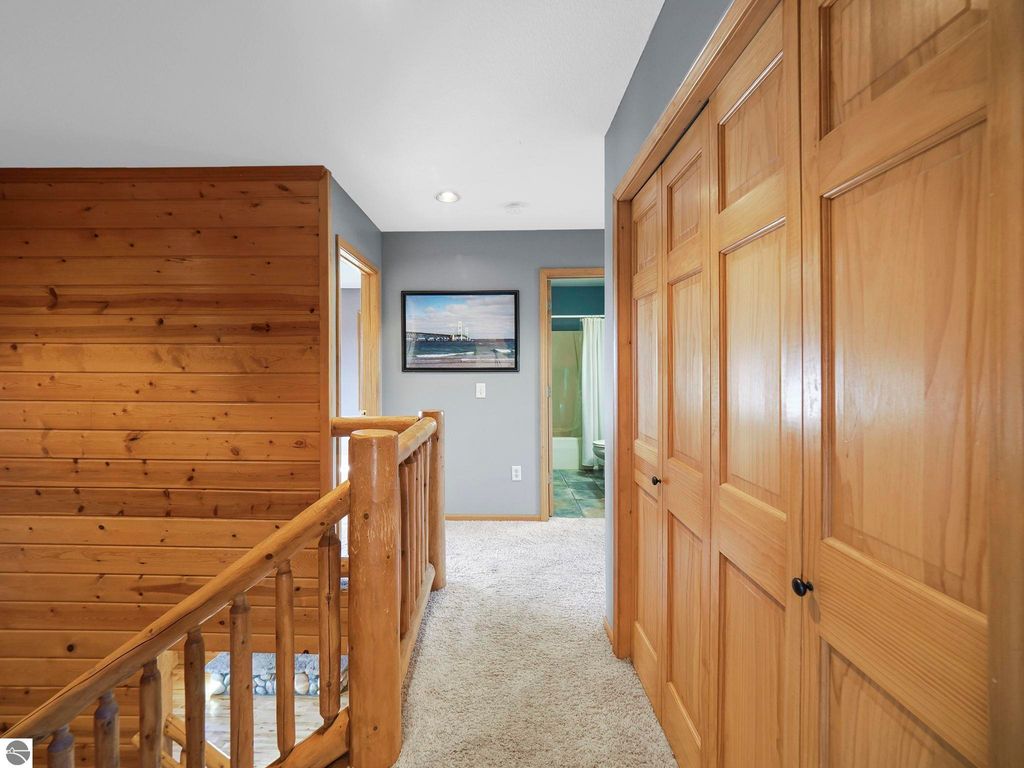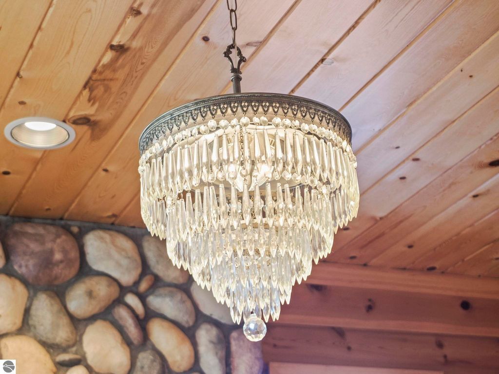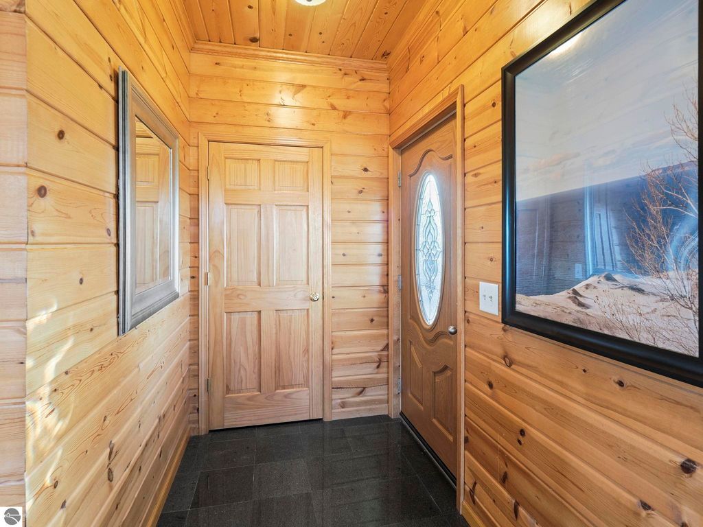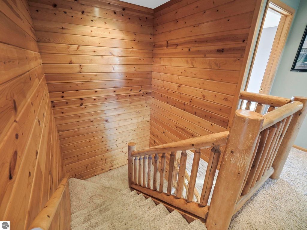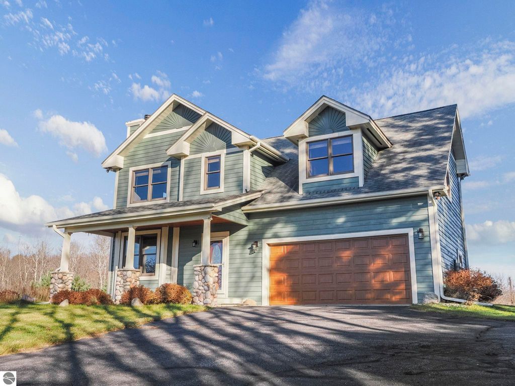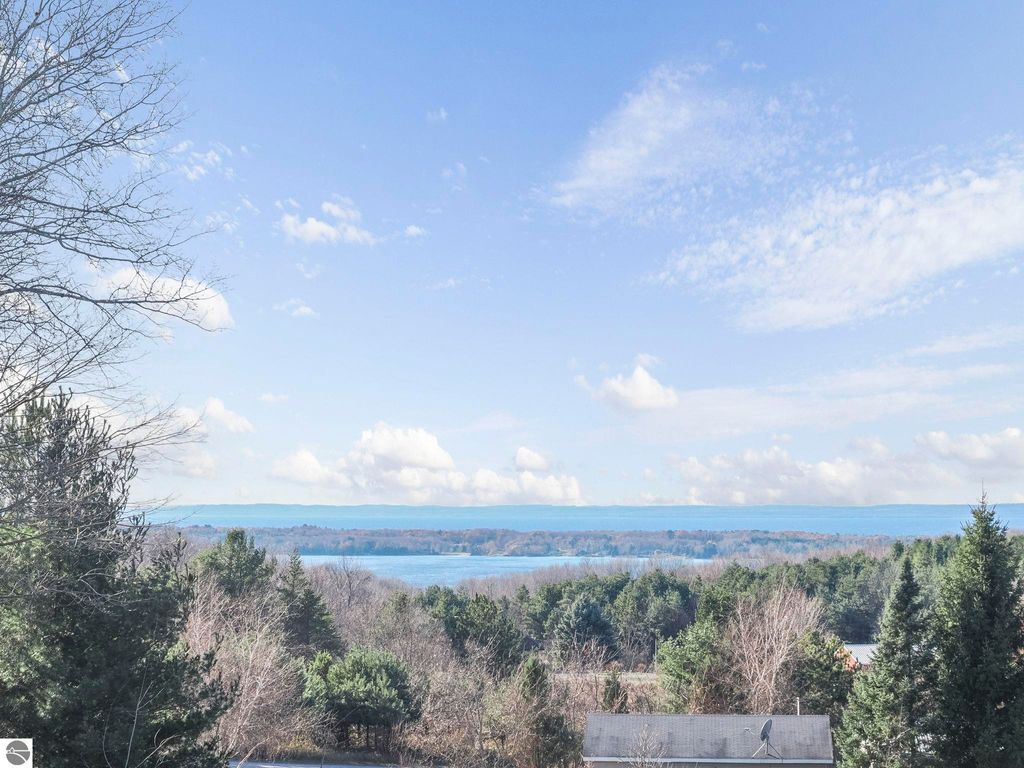 Start your day enjoying captivating views of the blue waters of Torch Lake and East Bay. End your day relaxing on the covered porch, watching magnificent sunsets over these same blue waters. Perched above neighboring homes, this Porter built home features privacy and enchanting views not only of the water, but also unobstructed countryside views from the back. The interior of the home is a nice mix of knotty pine and drywall. The living room provides a cozy lodge feel, centered around the view and the natural stone woodburning fireplace. Drywall in the kitchen and dining room provides a break from the knotty pine and helps to keep the home from feeling too dark. Upstairs, you'll find a primary suite with private bath, walk in closet and water views, as well as two additional bedrooms and a shared full bath. The huge family room can serve so many uses ... media room for that large screen TV, game room, additional sleeping space, a home office, or a combination of these ... it's that big! While it feels like you're in the middle of nowhere, the location is perfect. Torch Lake access is < 2 miles away, shopping and dining in Central Lake is 3 miles away and the boat launch in Eastport is just 4 miles. In an area of beautiful homes, this one is priced to sell, and will easily become someone's up north dream come true.