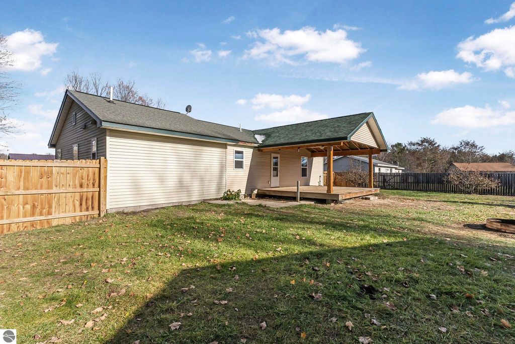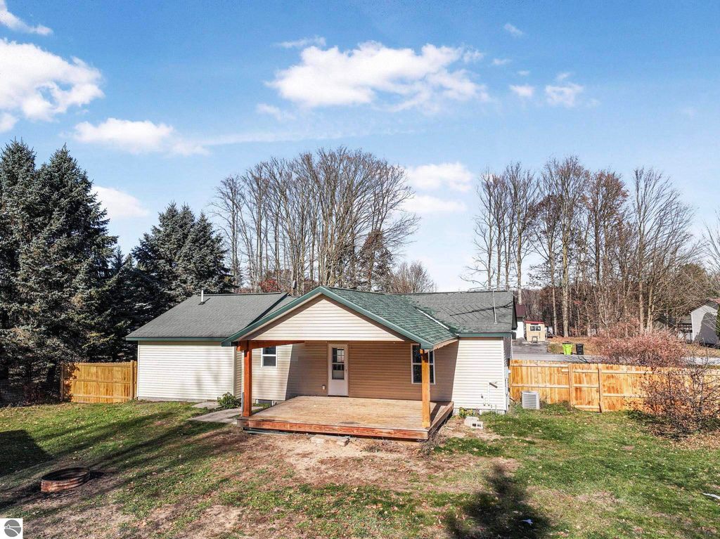 Cute and cozy ranch style home located a short distance from Traverse City. This 3 bedroom 2 baths home offers a bright and open main floor layout. Island kitchen design with stainless appliances and access to rear covered deck. Spacious living room with natural gas fireplace. Main floor primary bedroom with walk-in closet. Partial finished lower level. Large rear yard with fire pit and garden. All in a wonderful location to Traverse City, schools, parks, & shopping.