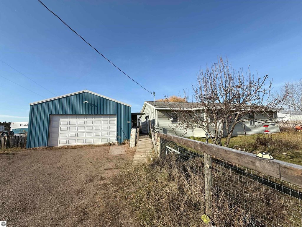 This 2-bedroom, 1.5-bath home offers an open layout, includes sunroom off the back and has a comfortable primary suite complete with a full bathroom that has a soaking tub, double sinks, and separate shower. Enjoy the reliability of natural gas, a brand-new furnace, and a whole-house Generac generator for peace of mind year-round. The property includes a spacious pole barn with electric and a concrete floor, ideal for vehicle storage, workshop needs, or hobbies. The front and back yards are fully fenced, perfect for pets. Outdoor lovers will appreciate the yard full of fruit trees, offering a touch of country living. Low utility costs make this home an affordable option whether you're looking for a year-round residence, investment opportunity, or northern getaway. Property is located in the village of Merritt between Lake City & Houghton Lake.