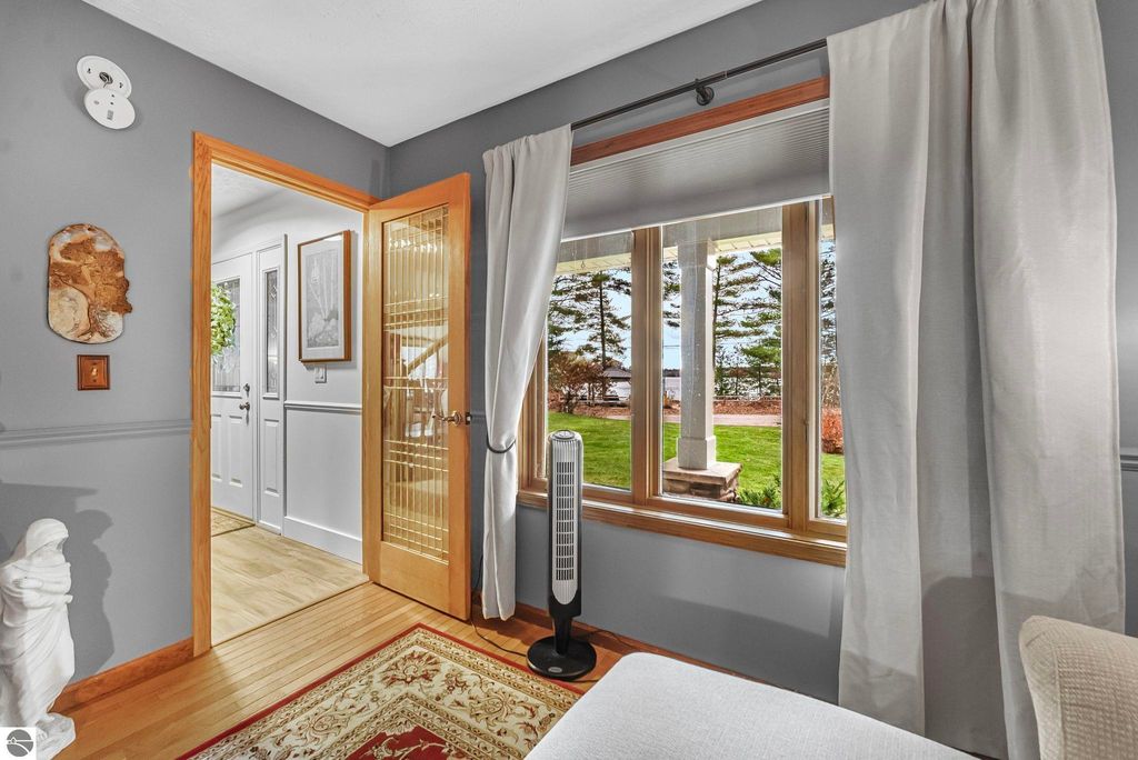 Lake Ann Dream Home: Modern Luxury Meets Up North Adventure! This fully renovated 4-bedroom, 2.5-bath home sits on over 3 wooded acres with true lakefront on beautiful Lake Ann. Enjoy all the benefits of lake living without the high lakefront taxes"”the home and lakefront are on separate parcels with two tax IDs! Paddle, fish, or relax on your private dock. Inside, you'll find a chef's kitchen with gold accents, black quartz counters, a premium gas range, and generous space for entertaining. The home features a relaxing hot tub room, cozy fireplace, and spacious living and dining areas. Bedrooms offer peaceful views, and the huge garages provide ample room for vehicles, toys, or hobbies. Backs up to state land for added privacy"”enjoy wildlife right outside your window. This is the best of both worlds: lakefront living and acreage, but a smarter tax bill.