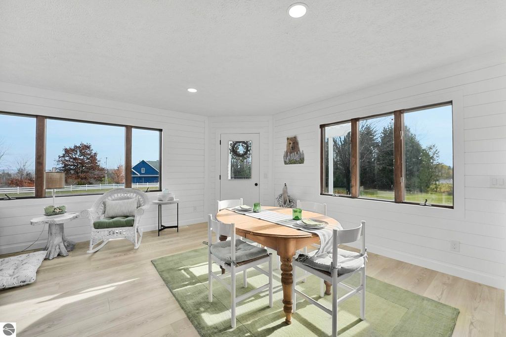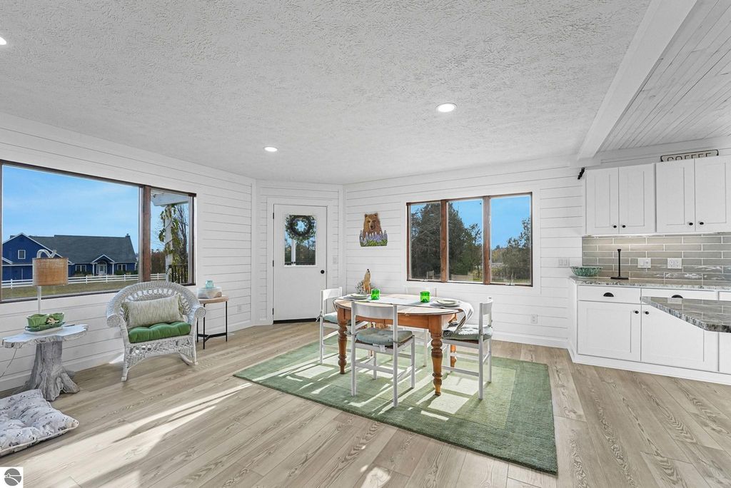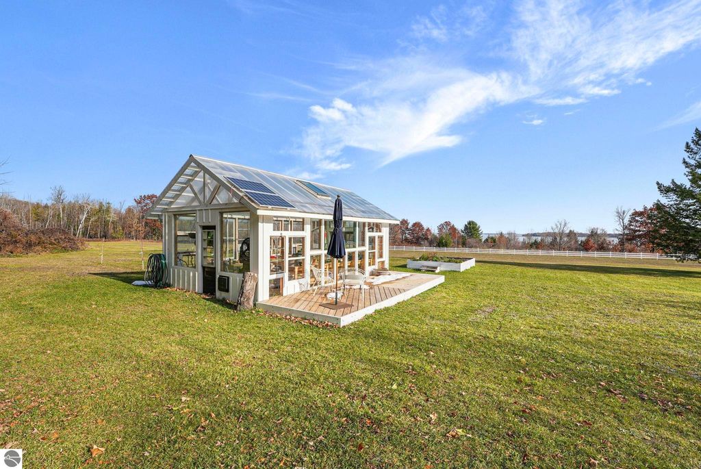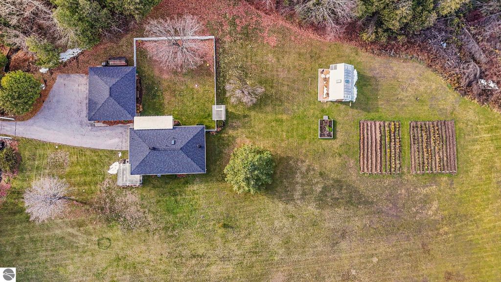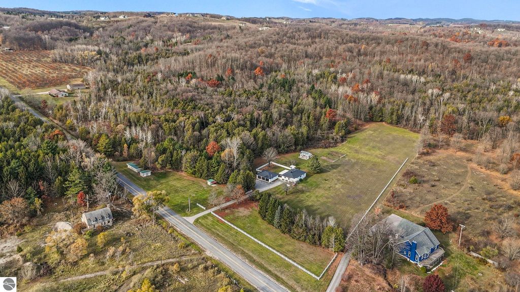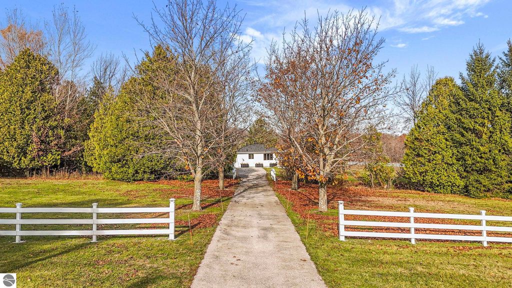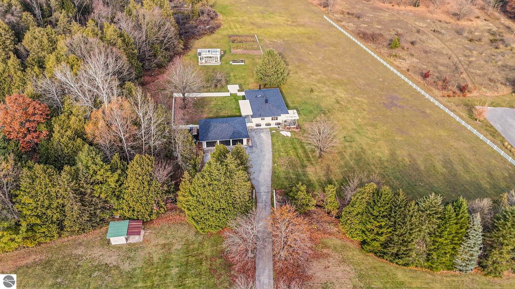 Listen to the soothing sounds of the babbling creek as you arrive at this completely renovated home set on nearly 25 acres of natural beauty. Enjoy groomed trails perfect for hiking or snowshoeing, where you may share the path with deer, foxes, and coyotes. The land is splittable and offers potential additional building sites"”many with likely views of the Bay. A custom, one-of-a-kind greenhouse"”crafted from reclaimed doors and windows"”stands as a true highlight, both functional and charming. Established flower gardens are ready for production, and the roadside outbuildings offer exciting opportunities for a garden shop, flower stand, or whatever creative use you envision.The expertly renovated two-bedroom, two-bath home leaves no corner untouched. With main-floor living, a finished lower level, and abundant storage, the open floor plan lives large. All new flooring, doors, walls, cabinets, lighting, and fixtures allow for effortless move-in"”just bring your toothbrush. The brand-new kitchen features quartz countertops, a center island, and new appliances, opening seamlessly to the dining and living areas for easy entertaining. Generously sized bedrooms are bright and welcoming. The finished lower level, complete with a wood-burning stove, offers a bright, airy space ideal for movies, games, guests, or a quiet retreat. A fenced yard provides a perfect place for pets to play, and the convenient 3-car garage offers room for all your gear. Located just moments from the charming village of Suttons Bay"”with the TART Trail right outside your door"”you'll have the best of Northern Michigan recreation, scenery, and small-town living at your fingertips.