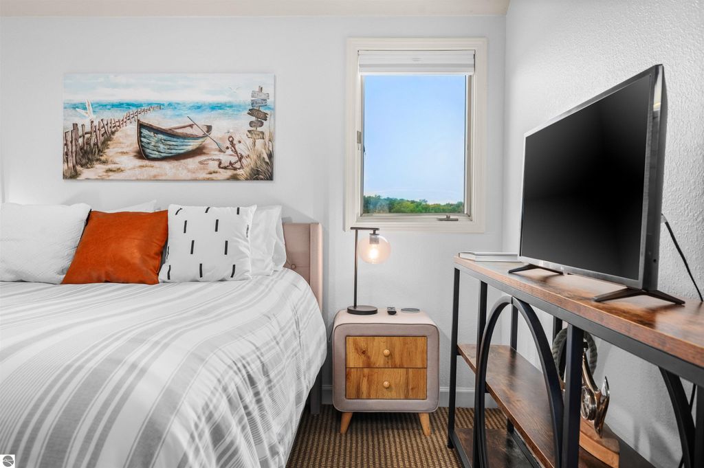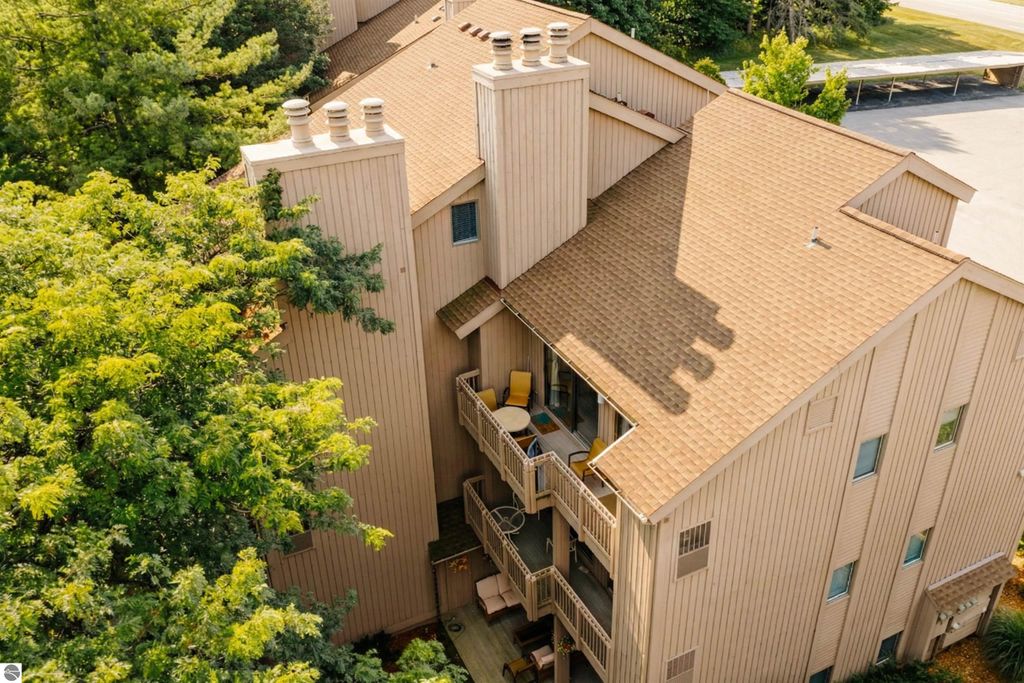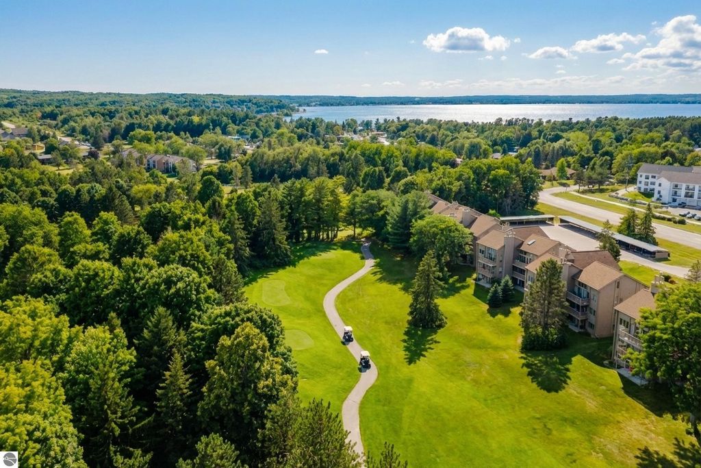 Perched above the third tee of Spruce Run Golf Course, this top-floor condo offers peaceful views, vaulted ceilings, and no upstairs neighbors"”just quiet comfort in a scenic setting. The lofted second bedroom adds charm and flexibility, while the main living space opens to a private balcony through both the living room and primary suite. The condo itself has seen several thoughtful updates, including quartz kitchen countertops, a new backsplash, and fresh professional interior paint. Brand new sliding doors are already scheduled to be installed. One rare bonus: in-unit laundry, which only a handful of Golfview buildings include. This property also has a solid track record as a short-term rental and could easily continue to serve as a "guest-favorite" successful Airbnb. Whether you're looking for a turn-key investment or a low-maintenance Up North getaway, this one just feels like the right fit.
