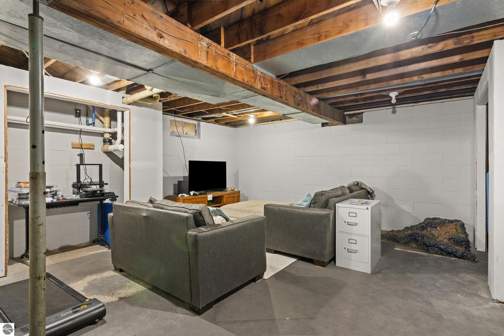 A Great Value! Move-in ready 3-bedroom, 2-bath ranch on a spacious 1-acre lot, conveniently located just south of Traverse City for an easy commute and quick access to shopping, dining, and everyday services. Inside, enjoy two inviting living areas"”one featuring a beautiful wood-burning fireplace perfect for cozy evenings. The main living room is generously sized and is currently being utilized as an extra non-conforming bedroom, offering flexible space to suit your needs. Relax in the jetted jacuzzi tub in the primary bath for a private retreat. Recent interior updates include water-resistant vinyl flooring added in 2021 throughout the living areas, hallway, and bedrooms, along with fresh interior paint and newer light fixtures. The lower level offers excellent potential to finish and customize, plus a convenient storage room that has been transformed into a home office. Pet lovers will appreciate the oversized backyard complete with a dog pen and kennel, just off the back deck. Exterior enhancements include a new gutter system installed in 2021, an above-ground sprinkler system, and a two-story outbuilding perfect for storing yard tools, equipment, and recreational items like kayaks. The established garden features a variety of perennials including grapes, blackberries, asparagus, trumpet vine, rhubarb, and apple trees"”ready to enjoy year after year. The oversized, heated 2½-car garage provides excellent storage and workspace, complete with an underground oil-change pit ideal for hobby mechanics or DIY enthusiasts. This property offers a fantastic combination of recent updates, outdoor amenities, and affordability"”all just minutes from Traverse City. Don't miss this opportunity!
