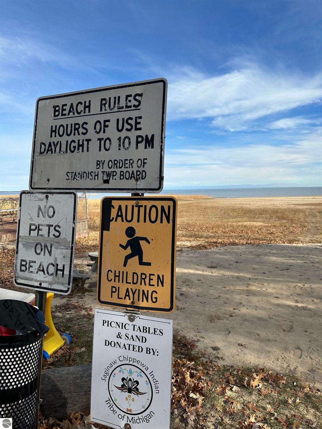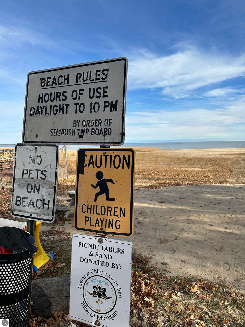 Rare opportunity in White's Beach for a very well maintained home on a large 2 and a half lot parcel. Spacious layout in this open design home, it seems much larger that a one bedroom home. Comfortable living room area with a nice view of the Saginaw Bay & Lake Huron! World class fishing awaits! Just steps from the beach. Kitty Korner to the White's Beach Tavern and a very short walk. Saganing Eagle's Landing Casino is down the road about a mile. Very clean, well kept, senior owned property. Beautiful 12 x 20' shed/garage including new steel roof that will fit a vehicle. concrete parking pad. The yard is landscaped with a 6' privacy fence on 3 sides, paver equipped patio/sitting area with quality fire pit. Plenty of room for your vehicles and room to park your boat trailer. 2.5 lots, so larger than most of the houses in this subdivision. There is also a large lot down the street that is for sale if you want to build an additional storage barn or need more parking space. This is a great value at this price!! Municipal water & sewer system is in the process of being installed into this subdivision.