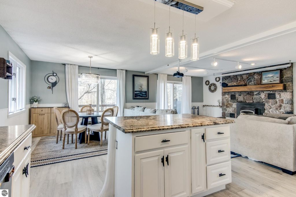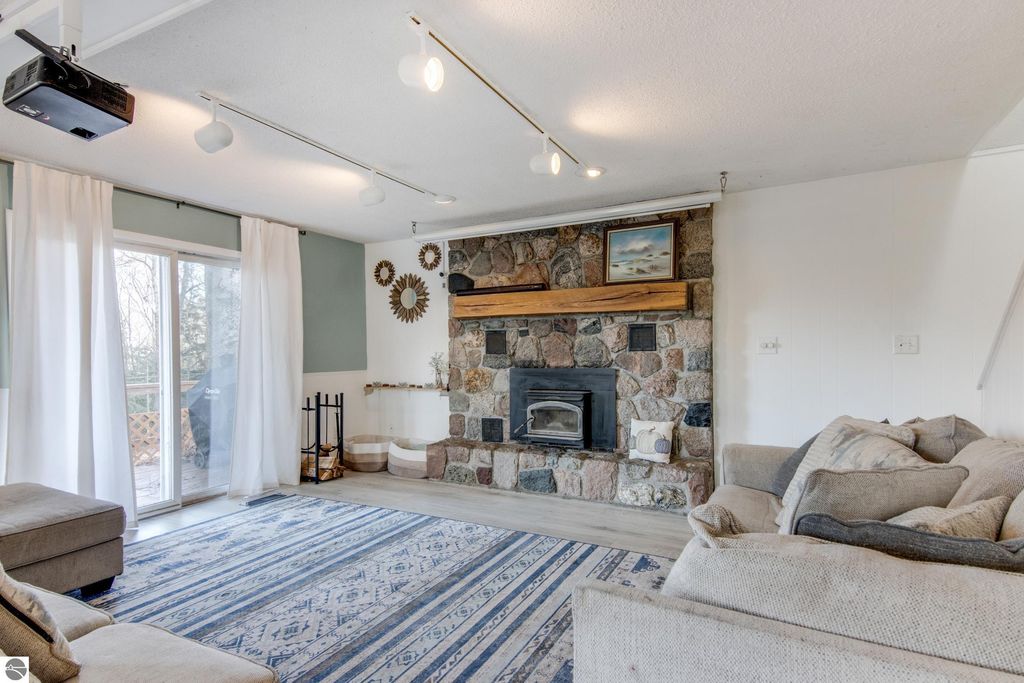 This property offers 2.75 acres of land, complemented by a spacious four-bedroom, three-bath chalet and an oversized three-car garage just a few minutes from town and year-round recreation. You'll appreciate recent updates that include updated lighting, refrigerator, mother of pearl backsplash, luxury vinyl plank flooring, and reverse osmosis filtration for both the refrigerator and cold-water tap. On the main floor there is a welcoming great room, with a natural stone fireplace & access to a wrap-around deck. The island kitchen offers ample space for preparing meals for gatherings. The laundry is conveniently located on the main level, along with a bedroom and a full bath for ease of daily living. Upstairs, you will find two additional bedrooms share a full bath. The lower level serves as a complete separate living or guest suite, featuring a bedroom or office, a 3/4 bath, a second full kitchen, and a family room with wood stove"”accessible from an exterior entrance and suitable for use as a game room or extra living space. The expansive garage accommodates multiple vehicles and equipment and includes a wood stove for heating. The generous yard ensures privacy, and the fenced garden area will enable you to test your green thumb. An additional garden building provides space for storage or may serve as a chicken coup. The property is conveniently located just minutes from the charming village of Bellaire, Shanty Creek Resort, the Cedar River and some of the region's finest lakes and trails.