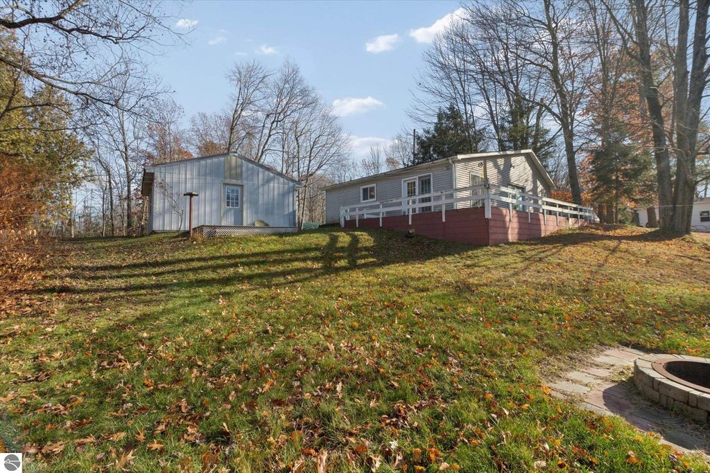 A Sportsman's Paradise! Your dream life awaits at this peaceful, waterfront home on no-wake Mud Lake. Enjoy quiet days of fishing while still keeping up with the honey-do list! This property features a brand-new 5-inch well installed in 2024 and a newly added propane furnace to go along with the cozy wood fireplace. This single-story home offers 2 bedrooms and 1 bathroom, and at over 1300 square feet, it has plenty of windows that fill the spacious living room and galley kitchen with natural light. A formal dining area is perfect for family gatherings, dinner with friends, or hosting hunting buddies. French doors lead out to the wraparound deck, giving you easy access to the outdoors. The property comes loaded with features any sportsman will love, including a private dock, fish-cleaning station, buck pole, and a brick fire pit. A 2-car garage provides space for tools, gear, and all your recreational toys. Wildlife is abundant, and state land for hunting is only minutes away. The lake offers great fishing for catfish, bluegill, perch, bass, and northern pike. You're also just 5 minutes from supplies in Lake Station, and only 15 minutes from Farwell and Evart for additional shopping and conveniences.
