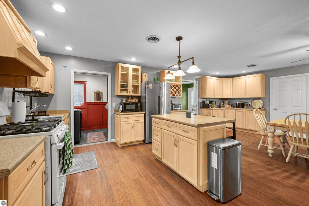 This spacious four-bedroom, two-bath home offers more than 2,000 square feet of comfortable living space set on ten beautifully wooded acres in Fife Lake. You will step inside to true main-floor, no-step entry living! The home is filled with natural light, featuring a very large open-concept dining, kitchen and living area that creates a warm and welcoming atmosphere...complete with a coffee bar and a walk-in pantry. Surrounded by nature yet close to trails and all the recreational opportunities that northern Michigan is known for, the property blends privacy with convenience. A stamped concrete walkway and patio welcome you home and provide inviting outdoor spaces to relax. The garage has one stall but it also has a workshop area which offers practical storage. There is ample room to add a pole building to house all your toys and equipment. With abundant wildlife and a serene setting, this property is ready to be your peaceful escape or your year-round residence.