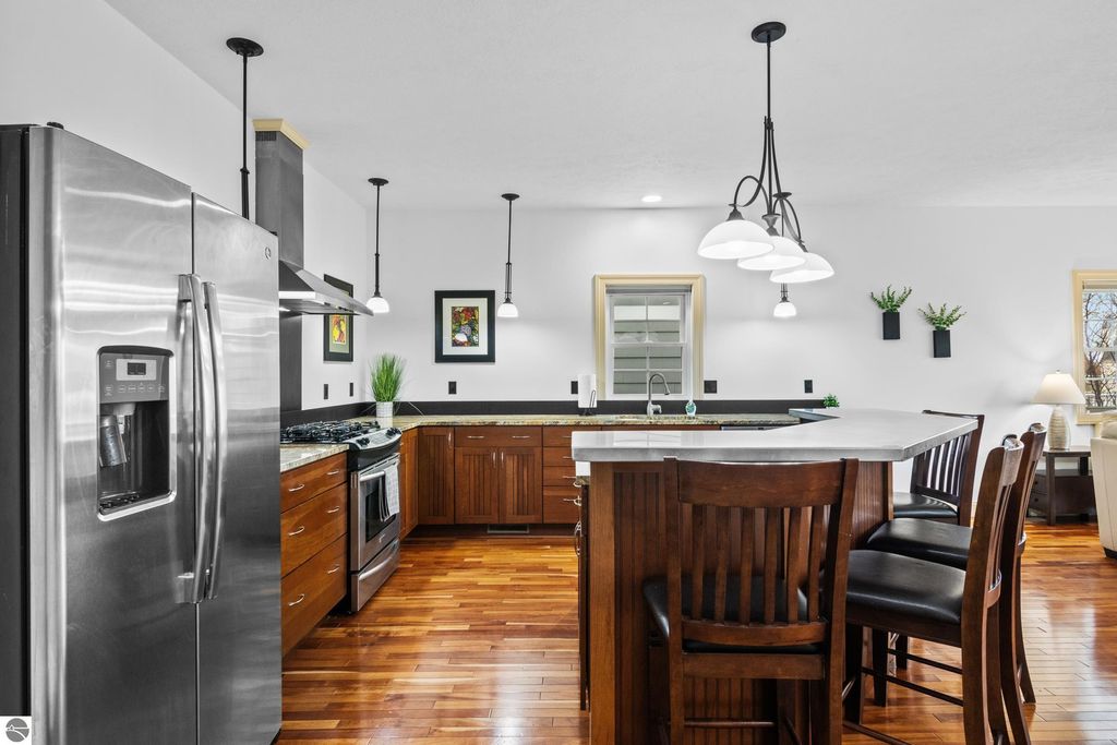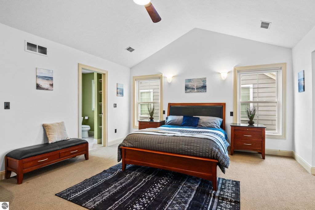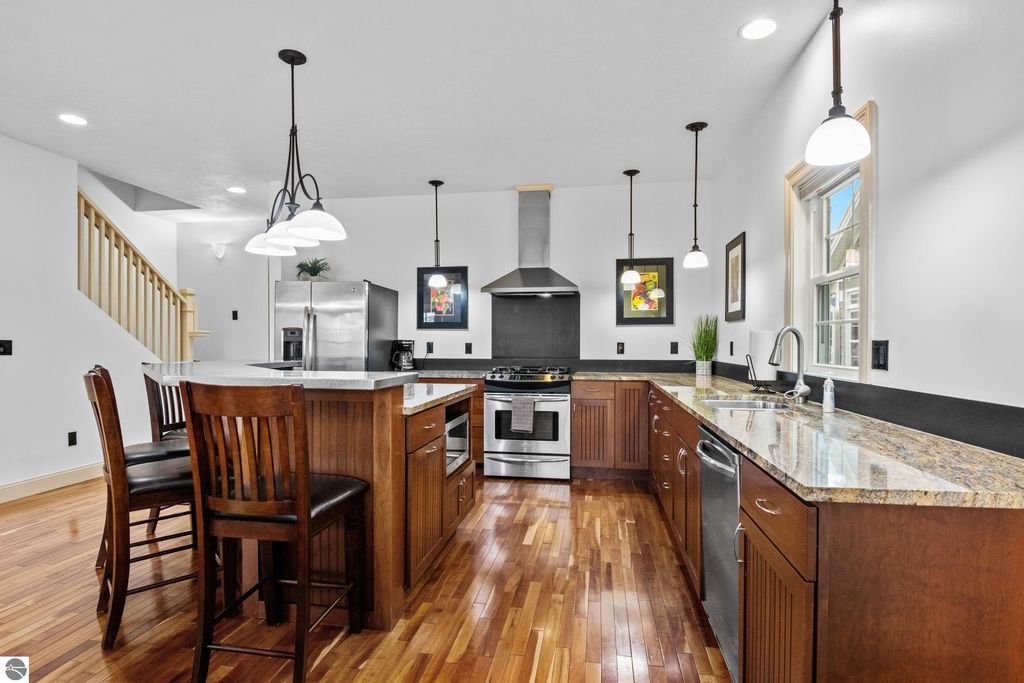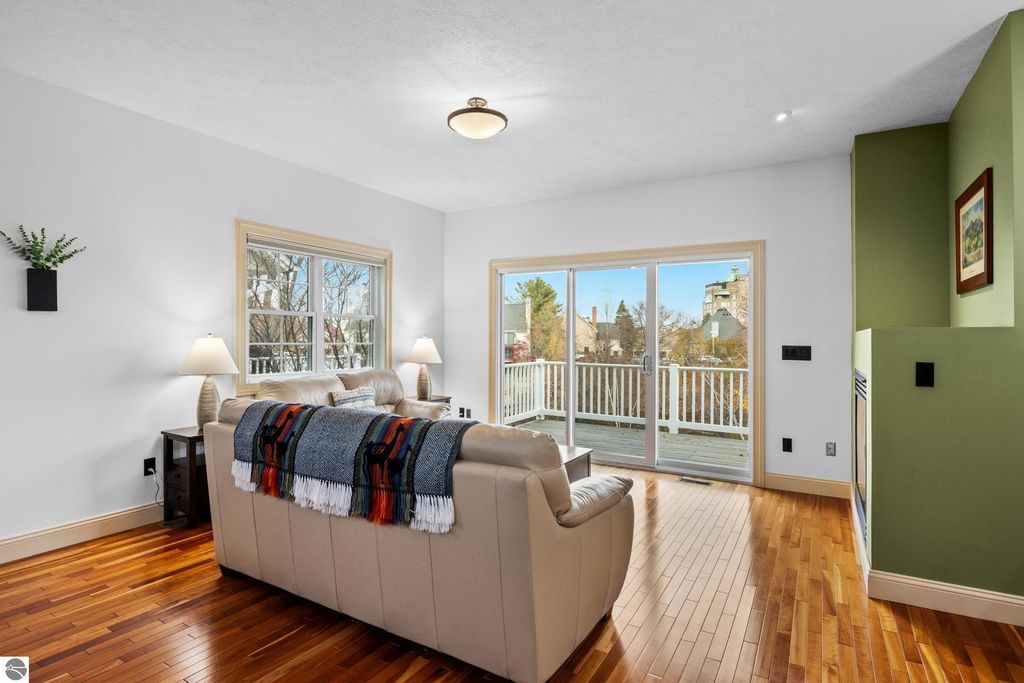 Riverfront Retreat in the Heart of Traverse City! Nestled along the peaceful banks of the Boardman River, this exceptional condo offers the perfect harmony of waterfront serenity and vibrant downtown living. Here, you can enjoy quiet mornings by the water and lively evenings just steps from some of the best dining, shopping, and entertainment in Traverse City. With 1,100 feet of shared river frontage, the possibilities for enjoying the water are endless. Tie up your kayak or small boat right outside your door, or meander to one of the nearby public beaches on West Bay. Two composite decks provide the perfect spaces to sip your coffee, host friends, or simply breathe in the fresh Northern Michigan air. Inside, timeless high-end finishes create an atmosphere that's both elegant and inviting. The primary bedroom is a true retreat, featuring a private in-room jacuzzi, in-floor heating, and a cozy reading nook overlooking the river"”a perfect place to unwind. The 1.5-car garage plus additional driveway parking offer both convenience and storage. Mature landscaping completes this idyllic setting, adding privacy and charm. Whether you're searching for a low-maintenance primary home or the ideal second home getaway, this property delivers the best of both worlds: riverfront tranquility and a prime downtown location. Key Features: * 1,100 feet of shared frontage on the Boardman River. * Two composite decks overlooking the water. * Primary suite complete with jetted tub, reading nook, in-floor radiant heat, large tiled shower, and massive closet. * 1.5-car hearted garage plus driveway parking, with workbench, and additional storage. * Close to restaurants, shops, and beaches on West Bay. * Turnkey living in the heart of downtown Traverse City This isn't just a condo"”it's a lifestyle. Waterfront living, downtown energy, and a touch of Northern Michigan magic.