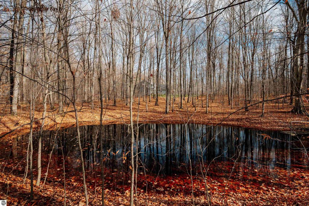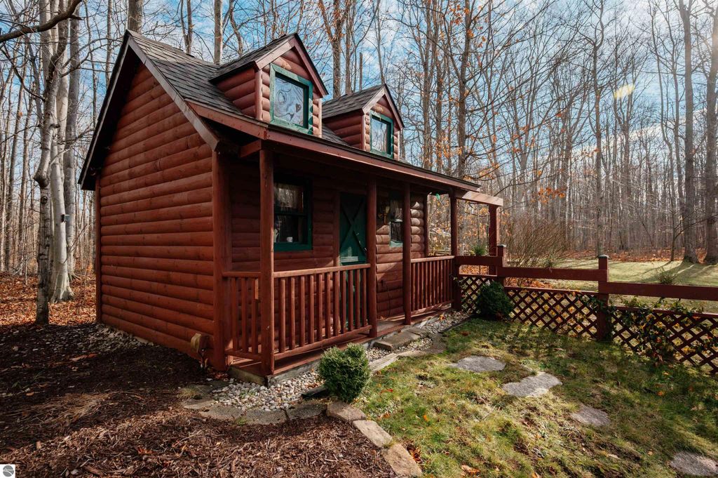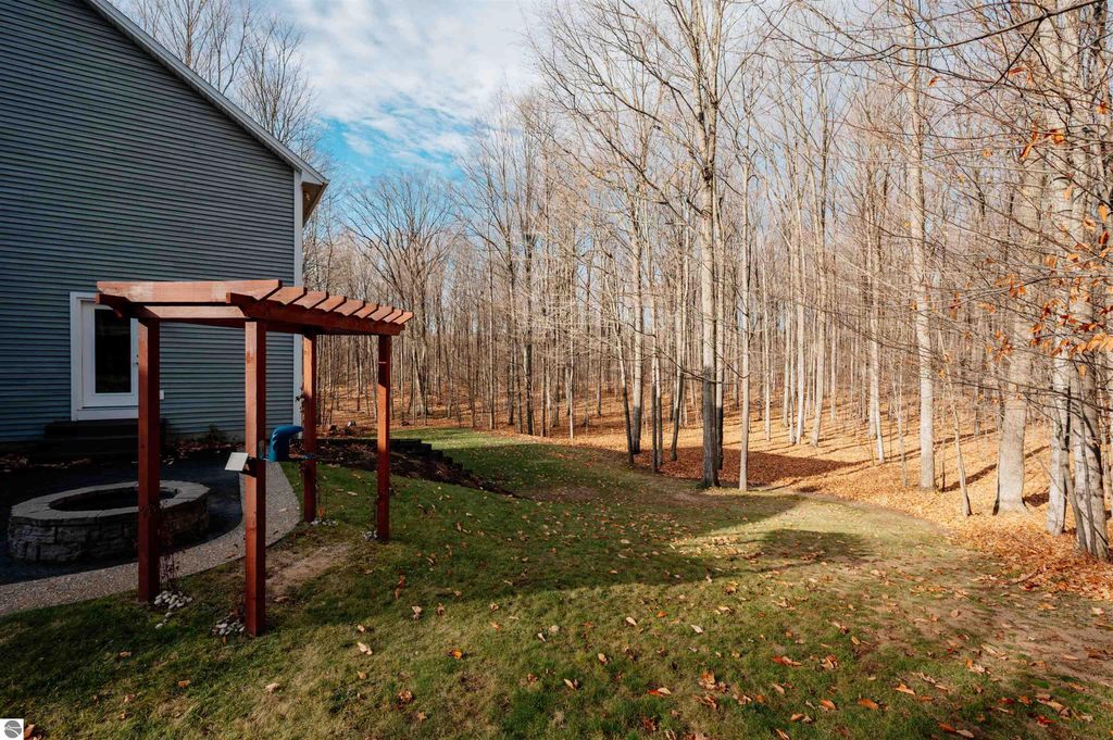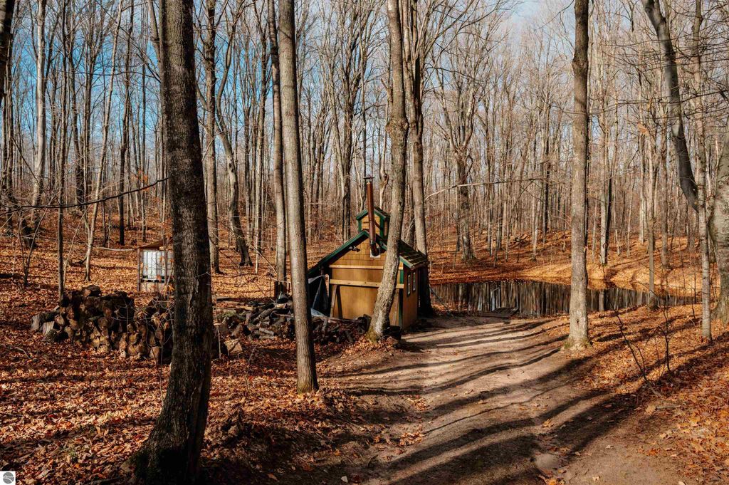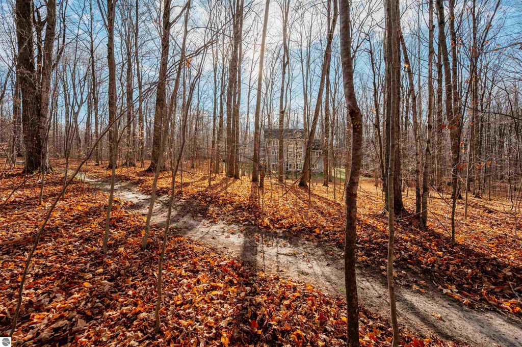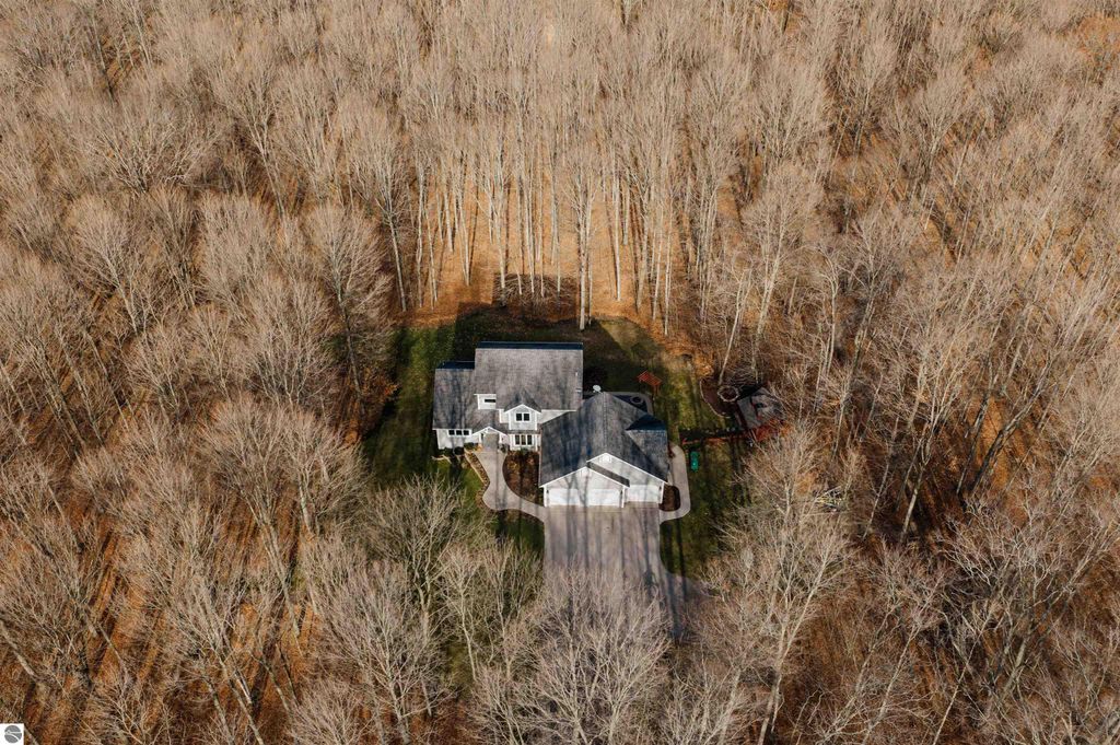 Welcome home to this beautiful, well-maintained 5-bedroom (plus an office), 3.5-bath home with 3,500 sq. ft. Set on 10 wooded acres at the end of a quiet cul-de-sac, this Leelanau County gem offers exceptional privacy and only 15 minutes to downtown Traverse City. Entering the front door, you'll be welcomed into the living room with a soaring two story ceiling and a cozy fireplace, looking out over a serene wooded setting. The spacious island kitchen features newer appliances and a large wall pantry. A convenient main-floor laundry and mudroom with built-in cubbies and a half bath sits just off the heated three stall garage, which includes a new storage system and access to a bonus room above, ready for your finishing touches. The main floor primary suite offers a large walk-in closet and a newly updated luxury bath. Upstairs you'll discover two generously sized bedrooms and another full bath. Additional living spaces, perfect for entertaining, include a formal dining room and a finished walkout lower level with two additional bedrooms, an office, and a dedicated theater room. Outside, enjoy beautiful landscaping, a large custom patio with firepit, an adorable playhouse, and even a maple syrup making sugar shack. Energy-efficient geothermal heating and cooling keep utility costs impressively low. See associated documents for a full list of updates. Don't miss this exceptional property!