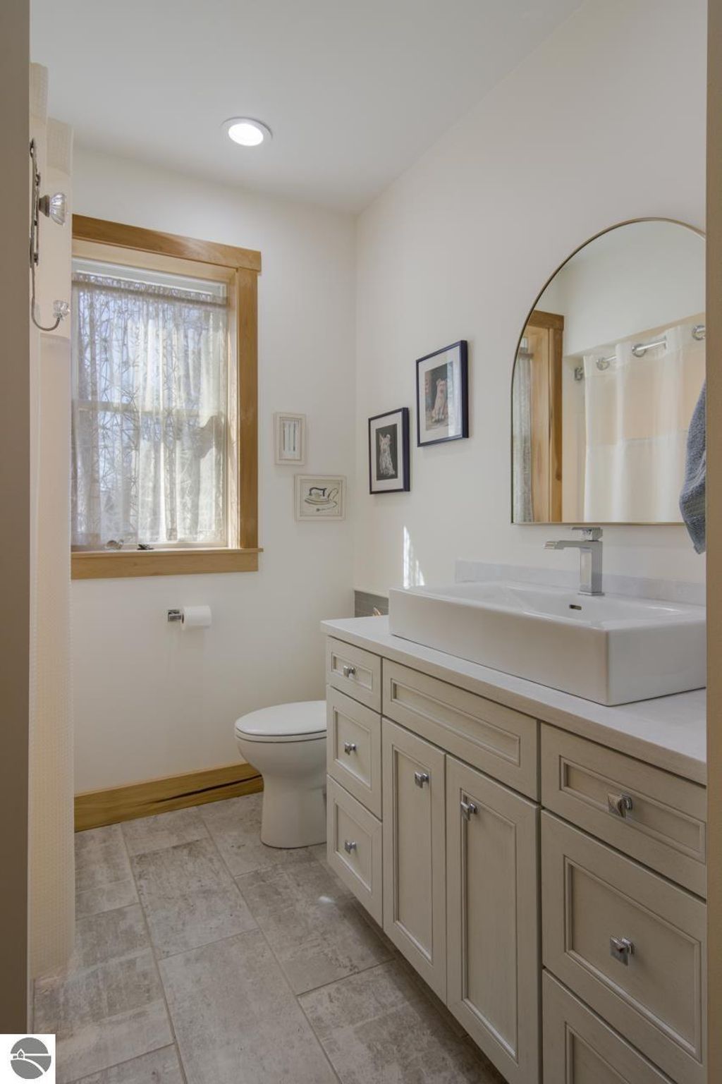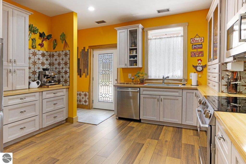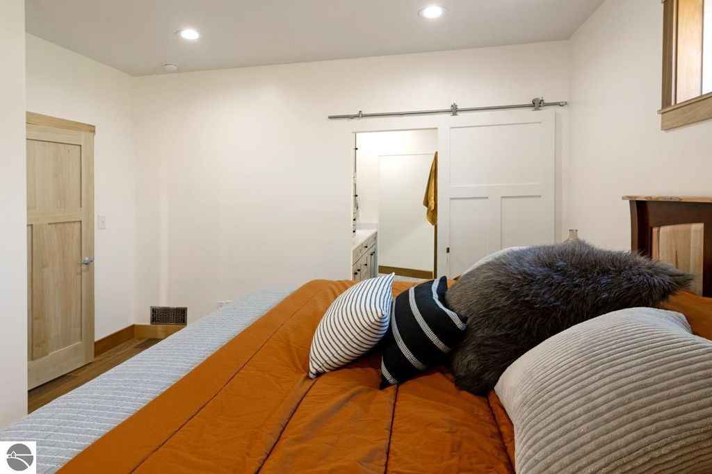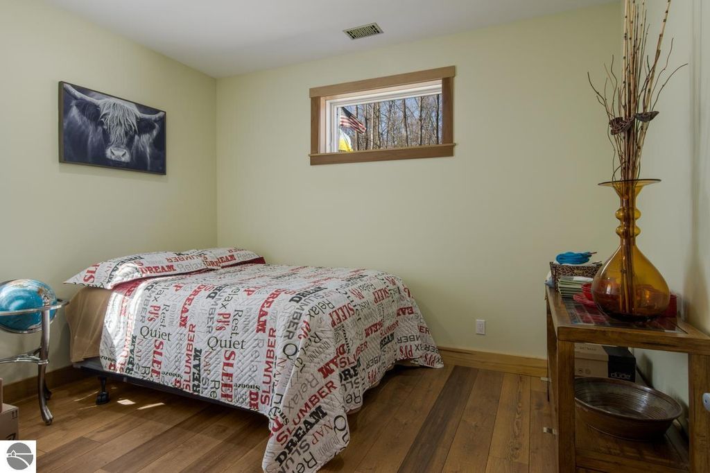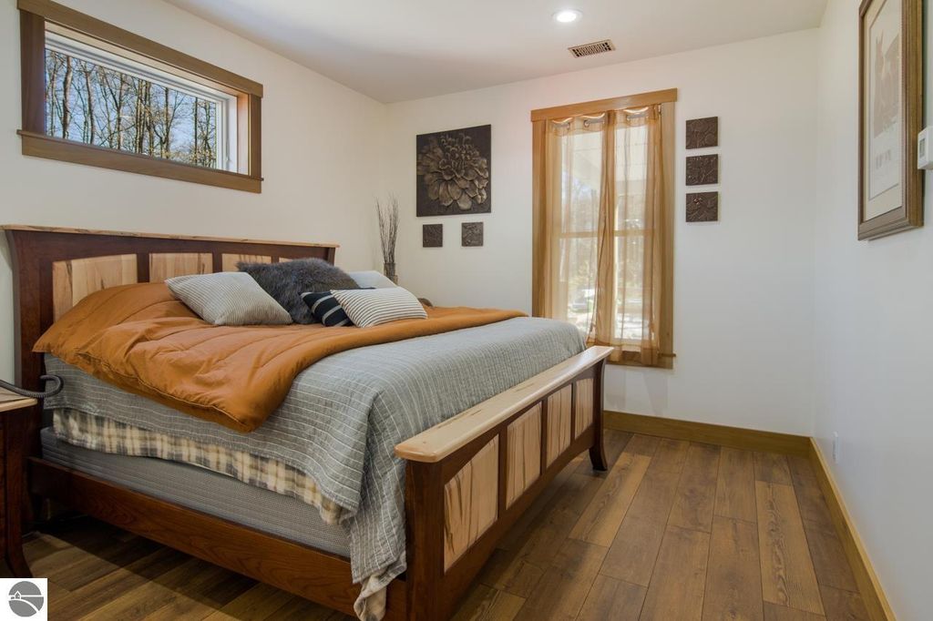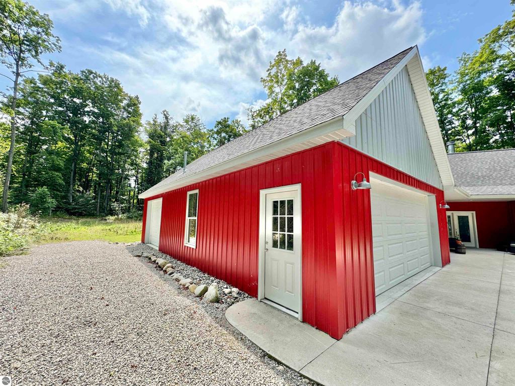 A Leelanau County Gem - This exceptional residence, carefully crafted in 2021, exemplifies superior craftsmanship and attention to detail. This rare find offers an elegant, low-maintenance lifestyle that surpasses expectations. The home's centerpiece is its advanced features, including high-density Superior Poured Wall construction, luxury HVAC, and premium finishes. A spacious workshop, garage, and a 30' x 40' pole barn provide abundant storage and workspace. With a 90+ heat pump, tankless water heater, and whole-house generator, this home is designed for efficiency. The beautifully landscaped grounds and inviting deck offer a serene outdoor retreat. The kitchen, a chef's delight, features butcher block counters and custom hickory cabinets. Don't miss the opportunity to make this masterpiece yours.