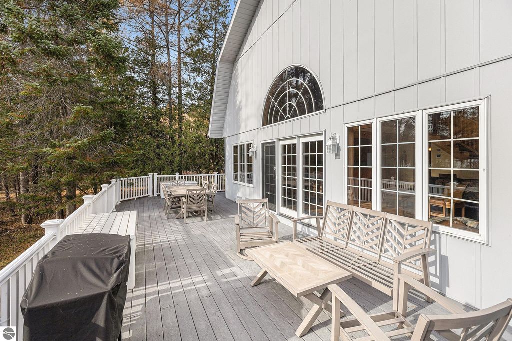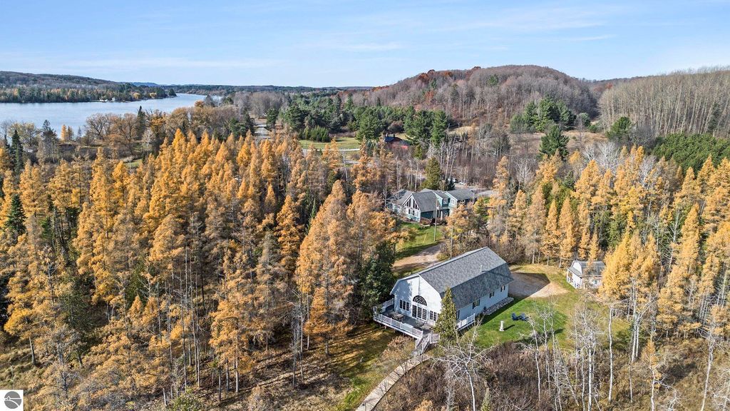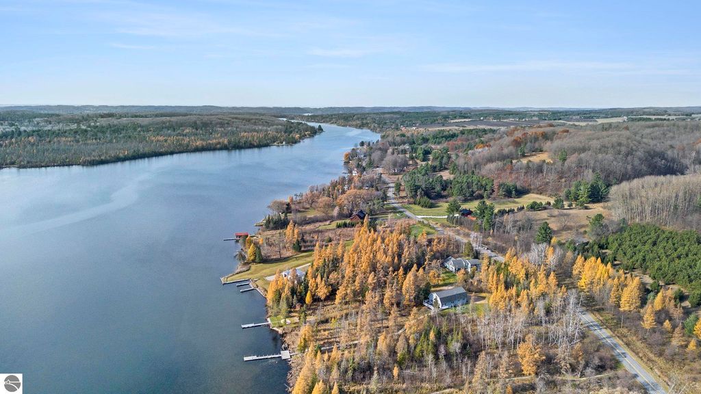 Set on 2.74 acres with 212 feet of private frontage on Clam Lake, this beautifully updated 3 bedroom, 2 bathroom home offers an exceptional blend of privacy, comfort, and Northern Michigan waterfront living. As part of the Lower Chain of Lakes, Clam Lake connects you to Torch Lake, Lake Bellaire, Lake Skegemog, and Elk Lake, forming one of the most unique freshwater systems in the country with more than 80 miles of navigable waterways for boating, paddling, and fishing. The home features nearly 2,500 square feet of finished living space with an open main level framed by lake views, cathedral ceilings, and a spacious kitchen and dining area. Two main-floor bedrooms provide comfort for guests, while the upper level is dedicated to a large primary suite with a private bath and dual walk-in closets. A generous family room upstairs offers additional gathering space and is large enough to accommodate extra sleeping quarters. Outside, a wide lakeside deck leads to level access at the water and a large dock capable of accommodating up to four boats, ideal for those who enjoy hosting. The attached two-car garage, additional storage shed, and wooded surroundings create a quiet and private setting. Located just minutes from Bellaire, Shanty Creek, Short's Brewery, ski and golf resorts, and year-round recreation, this home is perfectly positioned for both full-time living and vacation enjoyment. Offering rare frontage on one of Michigan's most desirable inland waterway systems, it delivers the true Lower Chain of Lakes lifestyle.