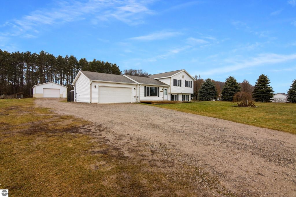 Peace and quiet with close-to-everything convenience, efficient heating and a massive pole barn to sweeten the deal. Now that I've got your attention, let me tell you more. Just 6 miles from Kingsley Schools, 10 minutes to Traverse City, and 35 minutes to Cadillac. This move-in-ready home sits on a peaceful road with just over 2 acres to call your own with in-ground sprinkler system. The 30' x 48' pole barn is the perfect place to store all your Northern Michigan toys and still have plenty of room left for your projects and hobbies. Some highlights of this 4 bedroom 2 bathroom include; the sizable windows that fill the home with natural light, the quality solid core doors throughout, build in main level surround sound, and the lower level beautifully tiled stand-up shower with dual shower heads; one rain head, each with individual controls for a spa- like experience. As the cherry on top of highlights inside the home would be the pellet stove which adds both charm and efficiency, providing an affordable alternative heat source that has historically cost only $600 a year to heat the entire home. The property offers a generous sized yard, perfect for kids and fur babies to run and play; complete with invisible dog fence to keep your four-legged friends safe, Enjoy peaceful country mornings on the front deck or unwind with your beverage of choice on the back deck in the evening, soaking up the fresh country air. The pole barn provides incredible functionality with 12-ft. ceilings, a 10 x 16 overhead door, & a 8 x 38 loft for added storage. Barn has its own 100-amp box, 220 plugs wired for welder, work bench, and in-wall plumbing ready for air compressor, ready for all your projects, hobbies and honey-do-lists. With a great location, peaceful living, move-in-ready, standout pole barn, a little acreage to call your own, this property checks all the boxes. It's ready for its next owner to love it, enjoy it, and make wonderful lasting memories.