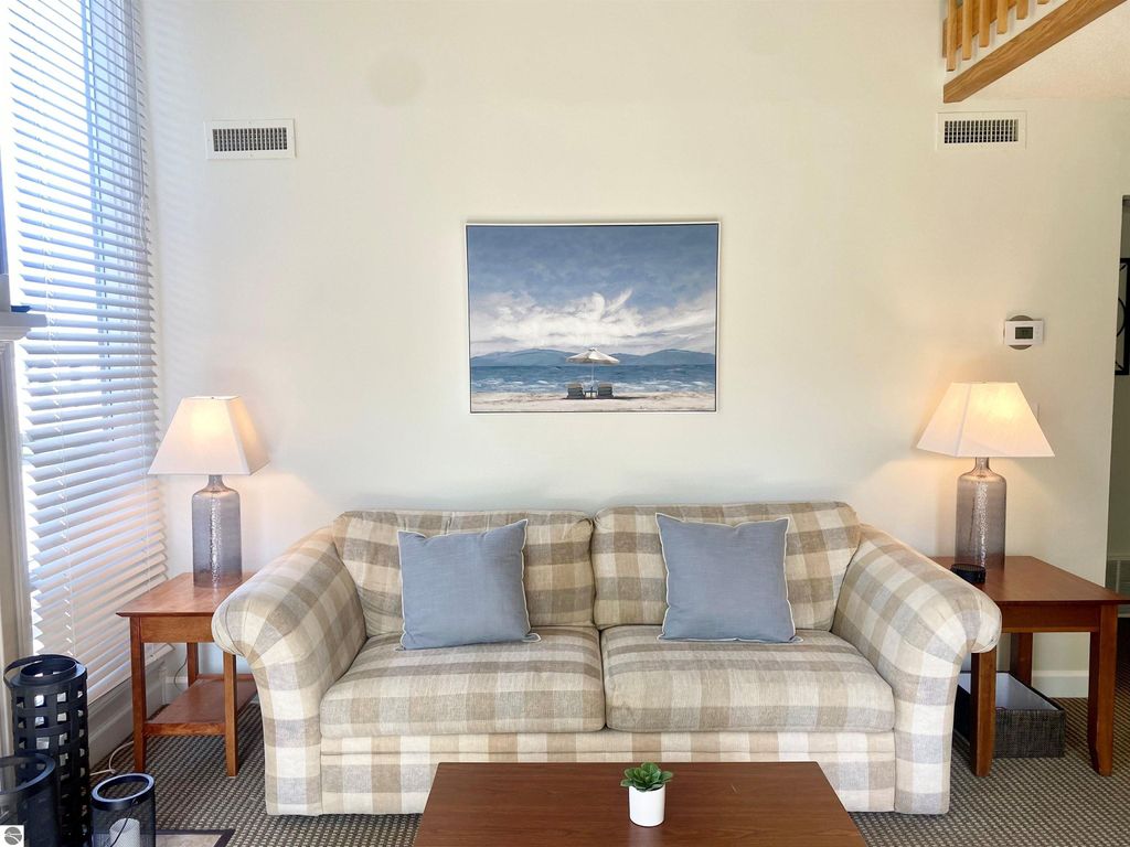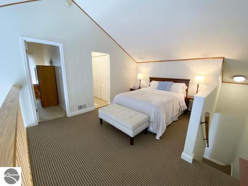 Welcome to the ideal Northern Michigan getaway! This 3 bedroom, 2 bath condo is located next to the Grand Traverse Resort & Spa with views of the Spruce Run Golf Course. This fully furnished condo has an excellent rental history, sleeps 8 and has everything you need for a comfortable and relaxing stay for your guests. Located on the top floor of the building, this freshly painted condo features vaulted ceilings on the main level, wood burning fireplace, new light fixtures (2024) new laundry room (2025), and new furnace (2025). Whether you're using this as your personal retreat or adding to your rental portfolio, this unit is ready for you!