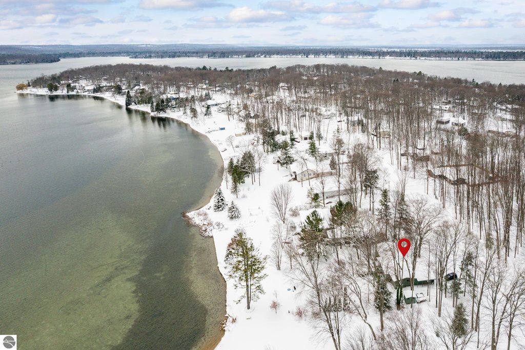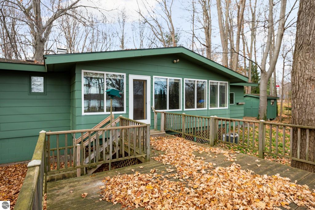 If you've been in searching for the perfect Northern Michigan waterfront location to establish a family legacy, this could the one for you! Perhaps one of the areas best kept secrets, this special property is located on the Duck Lake Peninsula, a relatively small enclave of both year round and seasonal residents that share neighborhood parks and events. This comfortable ranch style home is situated on a generously sized parcel, with beautiful mature trees flanking the house and it's slightly elevated perch, overlooking an open, lakeside yard with a S/E, morning sunrise perspective, what a lovely way to start your day! You'll create lasting memories celebrating holidays and special events in the spacious living/dining room that has amazing views of the lake, large elevated deck, and playground of a yard to the waters edge. You'll enjoy the efficient galley style kitchen with plenty of storage and prep space, and the peninsula/snack bar, a perfect space for casual conversation and serious culinary supervision. Three nice sized bedrooms including a large primary suite with tub/shower private bath, offer places for a good nights rest after enjoying a day on the lake, hiking or biking in the area, or even playing tennis or pickleball in one of the neighborhood parks. Main floor laundry/pantry area provides convenience, a workshop and heated office space are located beyond the attached garage, perfect for crafts and/or studio area. A handy garden/storage shed is a great place to keep bikes, kayaks, or seasonal items. The Duck Lake Peninsular Shores Association established in 1975 has an active and vibrant membership that helps maintain the parks and accesses, and promotes year around activities through regularly published newsletter. Association fee of only $85 per year is a small price to pay with lots of value. See associated documents for more details. Short term rentals are not allowed, however rentals of 30 days are more are permitted. Offers due 12/16 4:00