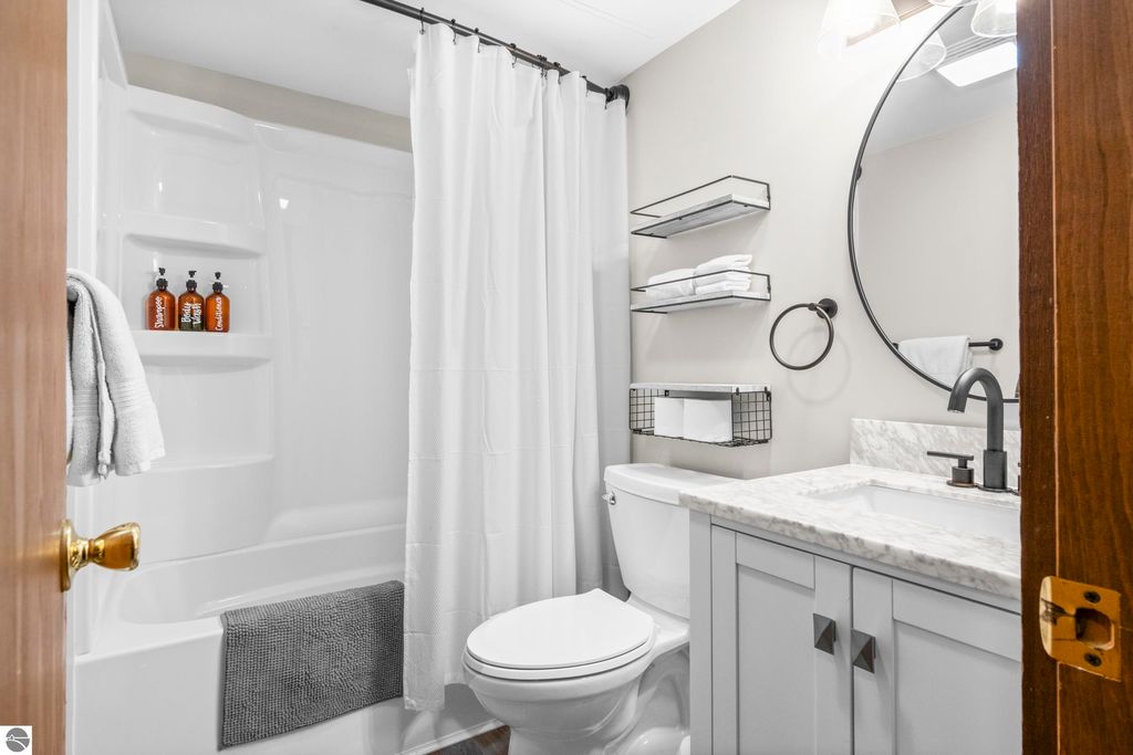 All winter you can be the first to hit the slopes from this classic ski condo at Shanty Creek Resort. Featuring 2 spacious bedrooms, 2 remodeled bathrooms, and a combined kitchen and living room. Comfortably sleeps 8-10 or more! Situated less than 500 feet from the base of Schuss Mountain, this FURNISHED condo has an option to expand the loft, adding even more sleeping or living space. Tall ceilings, space saving modern spiral staircase plus a crawl space for storage as well as deck lockers. Condo participates in a successful rental program with pre-booked rentals dates that would need to be transfered at point of sale. Condo can be split into two separate rental units too. Very modest monthly HOA dues of $375 per month.