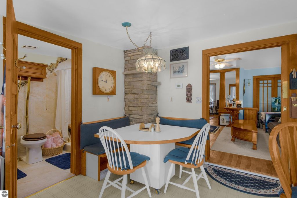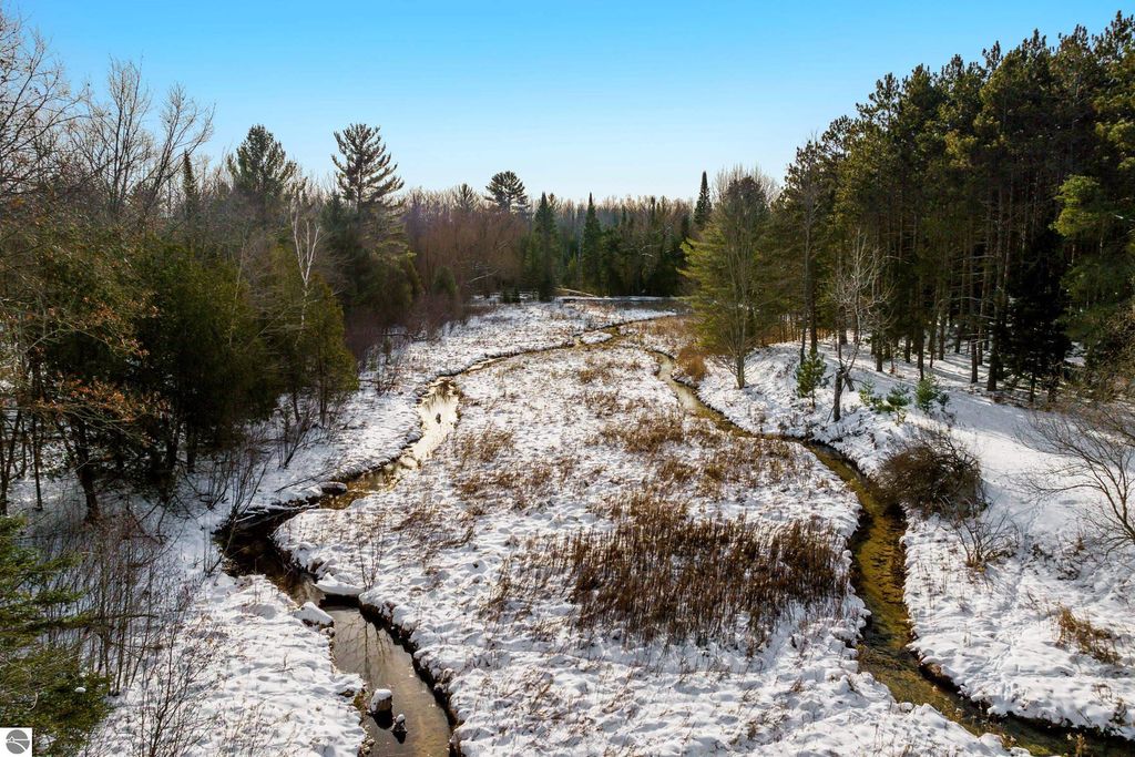 Own a piece of Bellaire history with this lovely 8.73 acre parcel, known for over a century as Terrace Villa. With 690' of frontage on Shanty Creek, the 2 BR 1BA home is less than .4 mile from Grass River, 1.5 miles from the Lake Bellaire public access, & under 10 minutes to Shanty Creek Resort. Once popular as a trout pond, the water flows freely now & you might still catch a brook trout. Originally built in 1888, and updated over the years, it retains its historic charm with a wraparound porch, detailed woodwork, and multiple parlors, while being equipped with modern comforts. The property once hosted several log cabins along the shore; today, cabin # 1 remains as a nod to the past resort style. With more than 8 acres, there is ample room to recreate a cozy resort or simply enjoy the privacy & natural beauty. Inside, a spacious foyer with wood floors leads to welcoming living spaces featuring custom trim, wood floors, and a wood-burning soapstone stove. Large windows provide serene views of the creek and grounds and multiple doors lead to the porch. The main floor includes one of two bedrooms & an updated bath with custom tile, heated floors, tile shower, and a vanity made from an antique dresser. The kitchen offers generous storage, a built-in banquette, and stone chimney accents. There is plenty of space if you wish to make updates. A full-length enclosed back porch overlooks the creek & a deck outside also overlooks the creek. The Michigan basement, with original stone foundation & abundant storage, includes the washer/dryer connections. Outside, you'll find a storage shed & one of the original guest cabins. Select furnishings and antiques may be available. The property is just minutes from town and within an hour of Traverse City, Petoskey, & Gaylord. This is a rare opportunity to steward a beloved landmark into its next chapter"”bring your ideas and rediscover the spirit of Northern Michigan.