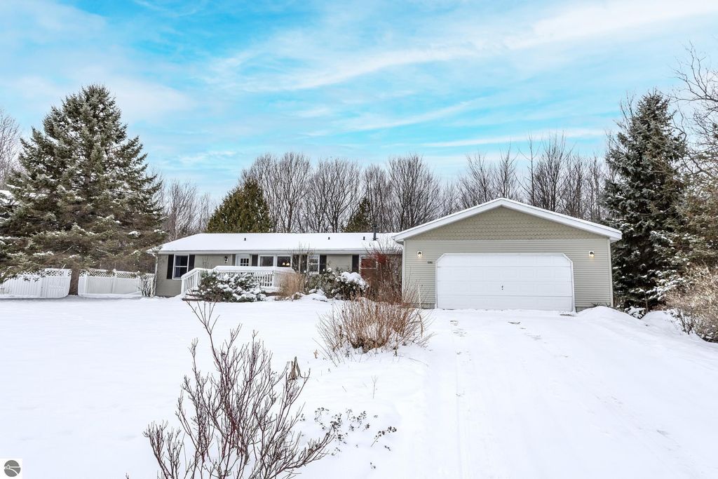 A beautifully maintained Timberlee home offering the ideal blend of comfort, convenience, and Northern Michigan living. The open-concept main level features vaulted ceilings, abundant natural light, and a spacious kitchen with excellent storage and workspace. The primary suite offers privacy with its own bath and generous closet space. Additional bedrooms provide flexibility for family, guests, or an office. Enjoy outdoor living on the elevated deck, plus an attached garage, mudroom entry, and ample storage. This home is located minutes from Munson Medical Centre, downtown Traverse City, wineries, trails, and year-round recreation, including Timberlee Sledding Hill. A Tamarack Beach Club membership transfers with the sale of the house, so the buyer may use the membership upon payment of the annual dues. The owner was among the last to obtain this membership. There is now a waiting list.