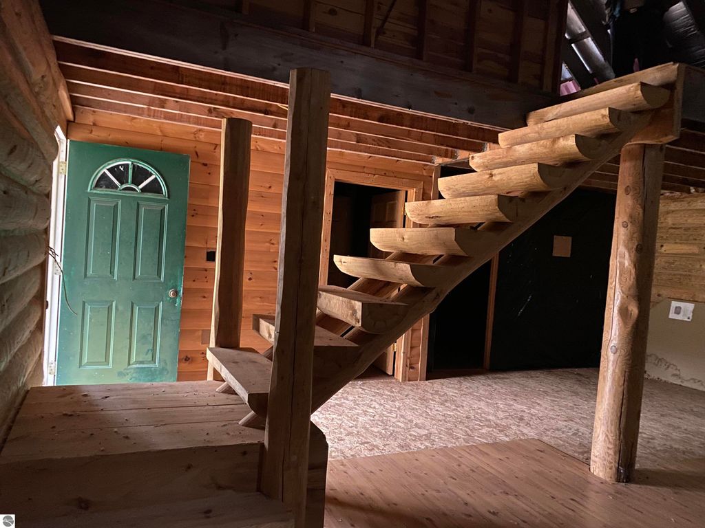 LOG CABIN/HOME - Under Construction with Exceptional Potential! This partially completed log cabin offers a rare opportunity to bring your vision to life in a highly desirable Up North setting. Main floor features one bedroom, one bathroom, laundry/utility room, along with an open-concept great room enhanced by vaulted ceilings that create an expansive and inviting atmosphere. Second bedroom/Loft overlooks the living area below offering additional sleeping space, a home office option, or a flexible retreat & relaxation area. Structural elements are well underway, with some flooring and insulation already installed. Unused building materials such as tongue-and-groove lumber and new ready-to-install pellet stove and hearth/pad included in sale offers both convenience and cost savings as you continue the build. Outdoor living spaces feature a full-length covered deck which spans the entire length of the cabin, perfect for taking in peaceful views of the surrounding landscape, an outdoor firepit, and a large covered porch at the welcoming entry point at the end of the driveway. Situated on approximately 2.7 wooded acres, this property offers privacy and an immersive natural environment with mature trees and abundant wildlife. Yet still close to local towns, Manton & Mesick, for shopping and dining out, and approximately 30 minutes to Cadillac. So much to do this in this beautiful "Up North" area of Michigan! An outdoor garden shed adds functional storage for tools, equipment, or recreational gear. Whether you envision a quiet year-round residence or a seasonal getaway, this property provides the framework, location, and character to create the cabin experience you have been looking for.