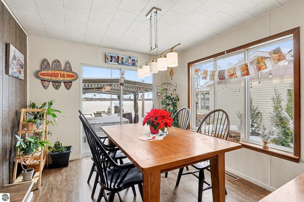 Discover lakefront living on highly desired Sand Lake with this inviting 3-bedroom, 1.5-bath home that's perfect for year-round enjoyment or a relaxing Up North getaway. Inside, an open kitchen and dining area make gathering easy, while the spacious living room offers plenty of room to unwind after a day on the water or trails. Wake up to beautiful views from the lakeside primary bedroom, where the morning light reflects off the water. Step outside to a large cement patio overlooking a sandy beach area offering an ideal spot for summer lounging, evening fires, and watching the boats drift by. A durable metal seawall adds peace of mind and low-maintenance shoreline protection. The partial basement offers convenient storage space for lake gear, tools, and seasonal items. And when adventure calls, you're just minutes from the Huron National Forest with miles of snowmobile and ORV trails to explore. Don't miss your opportunity to enjoy the best of Northern Michigan!