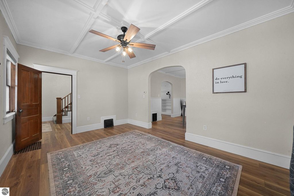 This gorgeous 3 bedroom 2.5 bath home will have you at hello! You will find many updates including new luxury vinyl flooring, new carpet, and fresh paint throughout. The kitchen has all new cupboards, appliances, and beautiful butcher block countertops. The arched doorways and architecturally designed ceilings give this home a warm historic feel. The basement has a fresh coat of paint on the floors and feels very clean and inviting. This home has a large yard for entertaining and lots of parking spaces in the back which is hard to find in town. Owner is a licensed realtor.