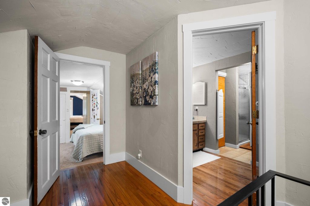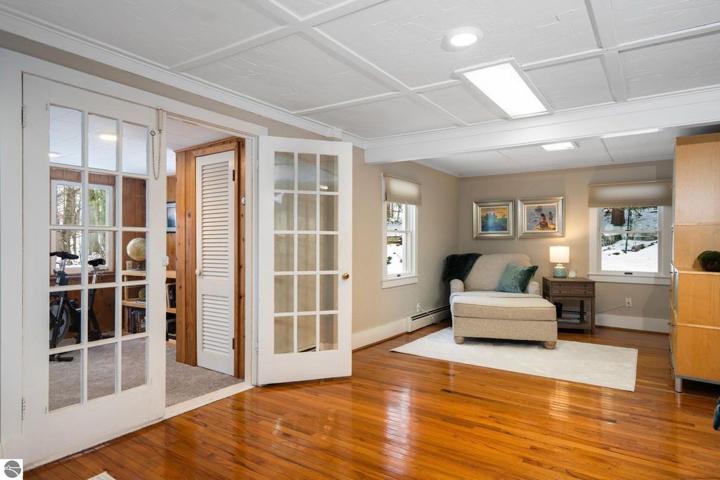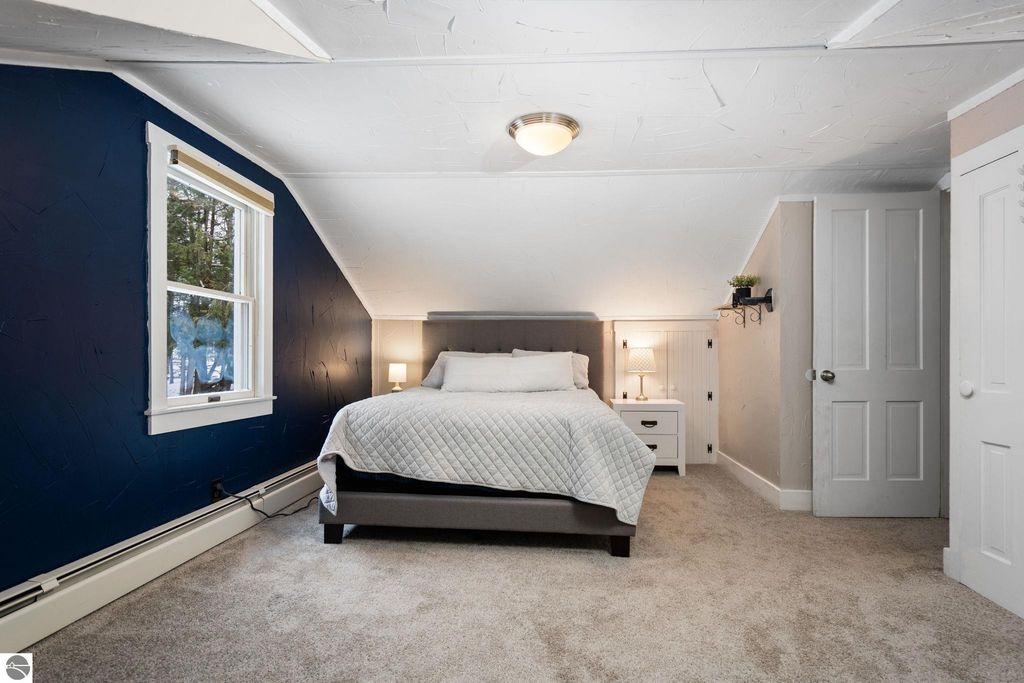 7787 East Shore Road delivers the kind of Old Mission Peninsula character that only a century of stories can create. Built in 1925 and once featured in Home & Garden, the original cottage holds a timeless charm that feels both authentic and enduring. Set on nearly an acre, the home offers 4 bedrooms and 2 baths, balancing historic warmth with everyday livability. What truly sets this property apart is its setting: 85 feet of private East Bay frontage with a stunning 180-degree view of the water, paired with a rare 360-degree natural panorama of mature trees, rolling landscape, and sky. Sunrises over the bay feel especially worth waking up for, while the surrounding views create a sense of immersion in nature from every angle. Located on East Shore Road - one of the most desirable and quiet stretches on Old Mission Peninsula - the setting is ideal for peaceful walks, morning runs, and leisurely bike rides. The road's calm, low-traffic nature enhances the feeling of privacy and serenity that defines this property. Mature trees frame the home beautifully, providing shade, seclusion, and a sense of permanence. Though it feels tucked into its own private world, downtown Traverse City is just 8 minutes away. For outdoor enthusiasts, the Old Mission Lighthouse is only 15 minutes away, offering over 20 miles of scenic hiking trails, sweeping views of West Bay, and some of the most iconic vistas in northern Michigan. Wineries punctuate the landscape here, with Black Star Farms just beyond the back door, reinforcing the unmistakable Old Mission lifestyle. This is waterfront living with history, character, and a setting that invites you to slow down - naturally.