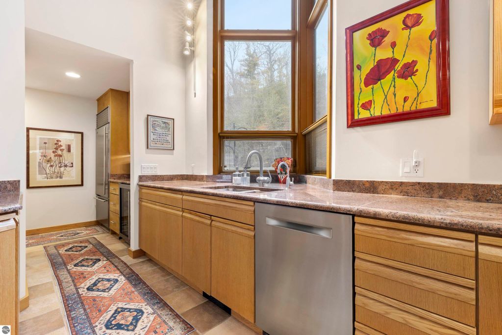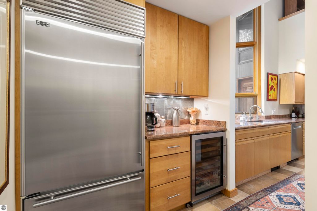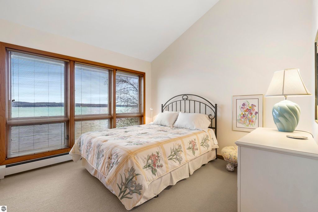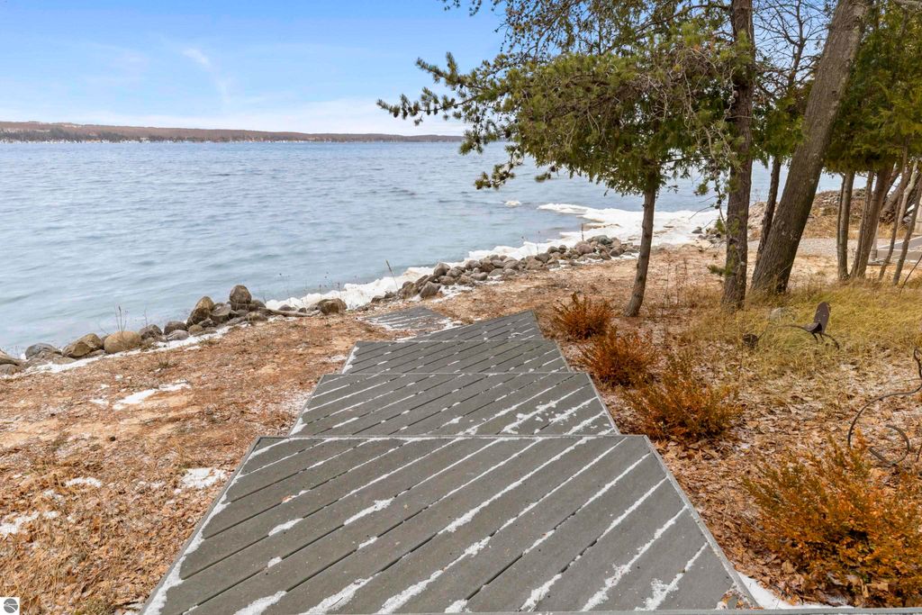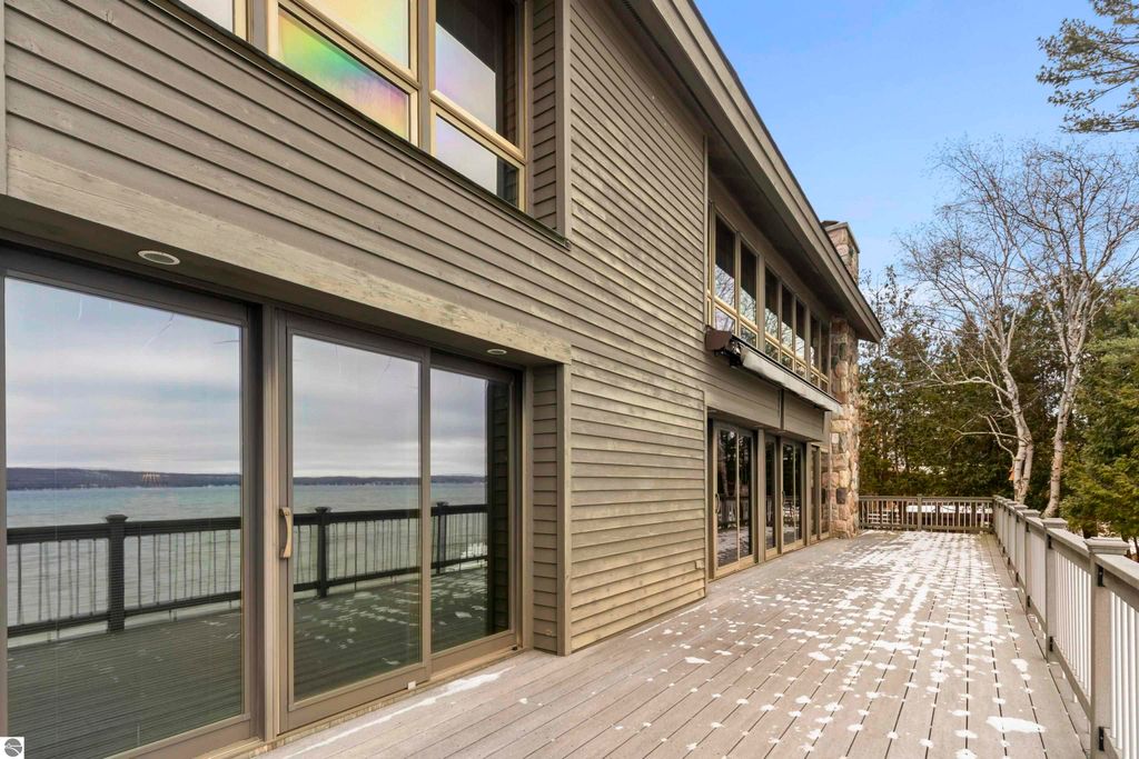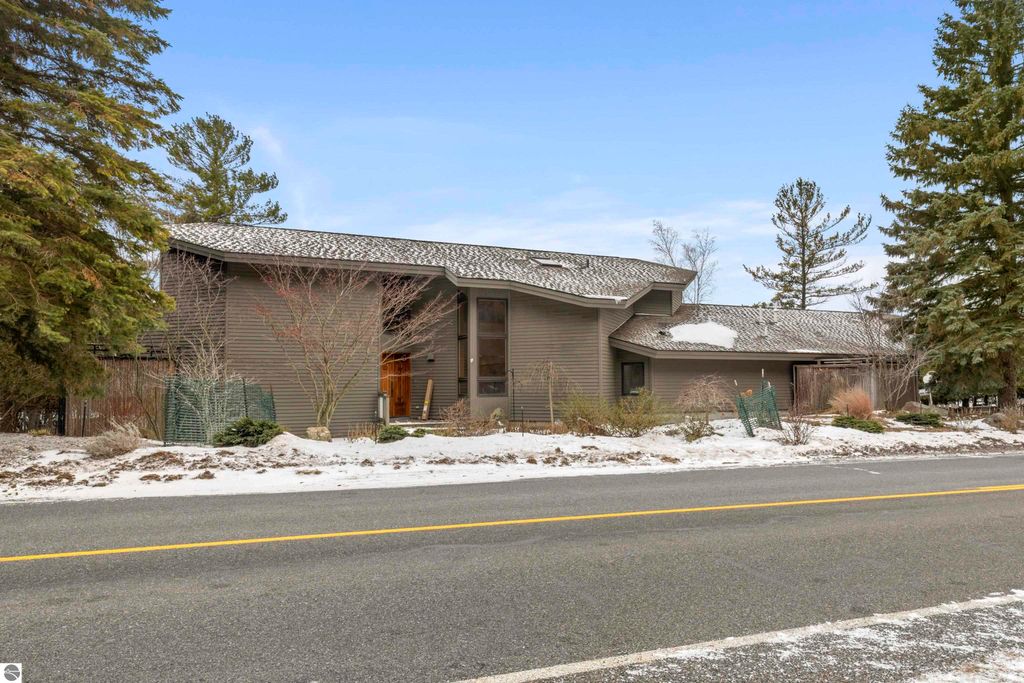 Wake up to Crystal Lake's signature blue-green water and west-facing sunset views that never get old. Thoughtfully architected to bring the outdoors in, this home is wrapped in expansive windows and soaring ceiling lines that capture the lake from nearly every room. With approximately 160 feet of private Crystal Lake frontage and no road to cross, this is the kind of direct waterfront setting people wait years for. Step out to the lakefront deck through multiple sliding glass doors for wide-open views and a peaceful feel"”sellers describe it as calm and relaxing, with minimal boat traffic out front. The home's design also intentionally helps reduce interior road noise, creating a quieter retreat. Inside, the main living space is anchored by a dramatic floor-to-ceiling stone natural gas fireplace, framed by a wall of windows and connected seamlessly to the dining area"”perfect for hosting with the lake as your backdrop. The kitchen features custom warm-wood cabinetry, granite countertops, tile floors, and a premium appliance package including two Sub-Zero refrigerators, a stainless steel range/hood, a built-in microwave, and a beverage/wine fridge. Offering four bedrooms, 3.5 baths, and 2,750 sq ft, there's room to gather, host, and settle in comfortably. Plus, a separate buildable lot across the road adds valuable flexibility and future possibilities. Experience Pure Michigan and Crystal Lake living at its finest"”Love Life, Live on Crystal.