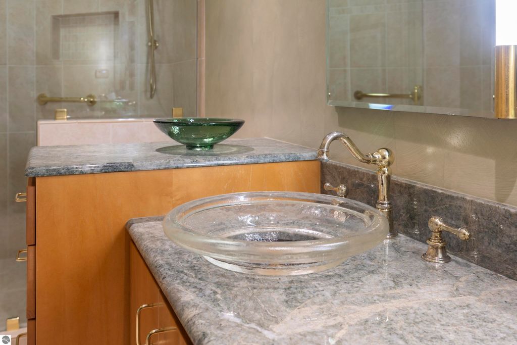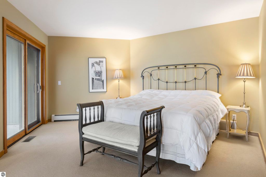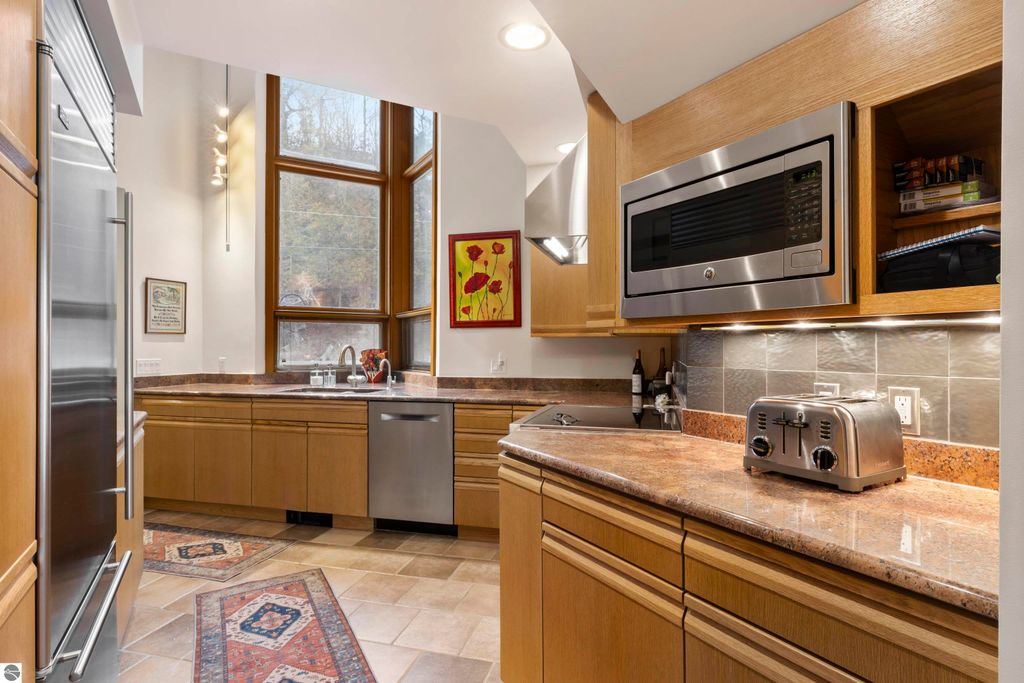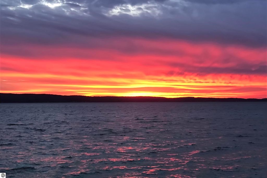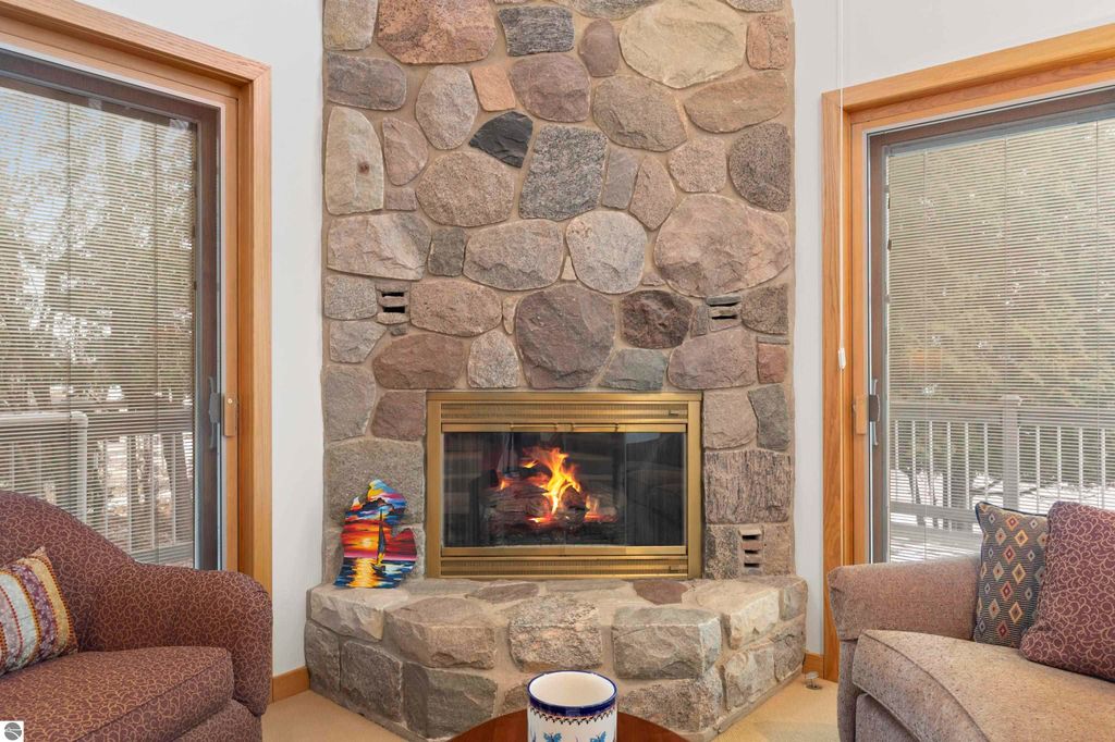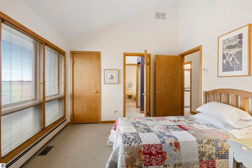 Wake up to Crystal Lake's signature blue-green water and west-facing sunset views that never get old. Thoughtfully architected to bring the outdoors in, this home is wrapped in expansive windows and soaring ceiling lines that capture the lake from nearly every room. With approximately 160 feet of private Crystal Lake frontage and no road to cross, this is the kind of direct waterfront setting people wait years for. Step out to the lakefront deck through multiple sliding glass doors for wide-open views and a peaceful feel"”sellers describe it as calm and relaxing, with minimal boat traffic out front. The home's design also intentionally helps reduce interior road noise, creating a quieter retreat. Inside, the main living space is anchored by a dramatic floor-to-ceiling stone natural gas fireplace, framed by a wall of windows and connected seamlessly to the dining area"”perfect for hosting with the lake as your backdrop. The kitchen features custom warm-wood cabinetry, granite countertops, tile floors, and a premium appliance package including two Sub-Zero refrigerators, a stainless steel range/hood, a built-in microwave, and a beverage/wine fridge. Offering four bedrooms, 3.5 baths, and 2,750 sq ft, there's room to gather, host, and settle in comfortably. Plus, a separate buildable lot across the road adds valuable flexibility and future possibilities. Experience Pure Michigan and Crystal Lake living at its finest"”Love Life, Live on Crystal.