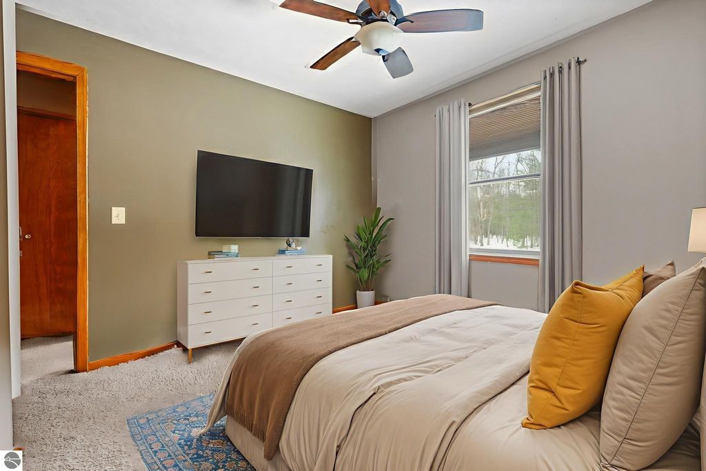 This inviting 3-bedroom, 2-bath home is set on a spacious 1-acre lot, offering privacy, room to roam, and a lifestyle that blends comfort with outdoor enjoyment. The fenced yard is ideal for pets, play, or gardening, while the deck provides the perfect spot for morning coffee or evening relaxation. Inside, the home offers a functional layout, providing comfortable living spaces ready for your personal touch. The metal roof adds durability and peace of mind, and the insulated, heated 2-car garage is a standout feature perfect for Michigan winters, hobbies, or extra storage. Located just minutes from Interlochen Center for the Arts, lakes, trails, and local conveniences, this property delivers the best of Northern Michigan living with easy access to Traverse City.