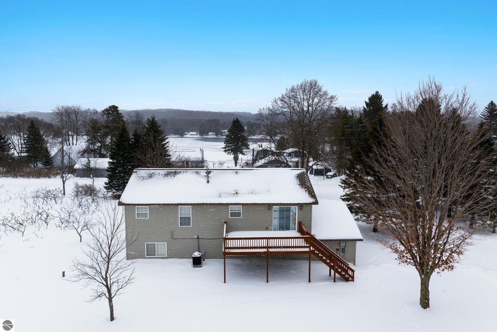 Well maintained 5 bedroom, 2 bath home offering beautiful views of Intermediate Lake from the living room and primary suite. The open main level features a functional layout with abundant natural light and a large deck off the kitchen, perfect for enjoying the scenery. The expansive primary suite includes two closets and a double vanity sink, providing both comfort and convenience. A dedicated laundry room with utility sink is located just off the garage entry. Situated on an expansive one acre lot, the property provides ample space for a garden, outdoor activities, or the addition of a pole building or extra garage. Additional features include an attached two car garage, paved driveway, abundant storage throughout the home, and city water. The property is near multiple public access points to Intermediate Lake, within walking distance to Central Lake High School, just minutes from downtown Central Lake, and approximately ten minutes from downtown Bellaire. A wonderful opportunity to enjoy lake views, space, and a well cared for home in a convenient location.