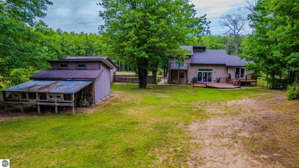 MOVE IN, sip your coffee, and relax-----because this home has zero 'weekend projects' for you. The big stuff is DONE: New Anderson windows throughout and a 9 x 8.5 ft door wall plus brand-new roof (2023), new central air with upgraded furnace parts (2022), new hot water heater (2024), generator-ready setup, a water filtration system, whole-house humidity control system and new decking (2023) freshly stained July (2025). Inside a 2,000+ sq. ft. custom-built comfort awaits. A triple Anderson sliding door wall frames gorgeous backyard views right into the living room with a wall-mounted electric fireplace. The private floor master suite offers a walk-out balcony, walk-in closet and updated full bath. The main level includes two bedrooms, full bath, living room and a heated 24x22 workshop/gym area with extra storage (cookies in...calories out). Just a few steps up the kitchen/dining area shines with hardwood floors, breakfast bar, work space and another cozy wall mounted fireplace plus a slider to a large deck. Outside enjoy 9+ beautiful wooded acres with hiking trails, a half-acre fenced area for kids and pets, an oversized 32x24 garage, a bonus outbuilding and two lean-to's. Best part? You're minutes from Higgins Lake, ORV/hiking/biking, ski trails, golf and the AuSable River--your playground for kayaking, fishing, or just soaking up that UP NORTH lifestyle. All the upgrades, none of the hassles and adventures in every direction. This one's ready for you to enjoy!