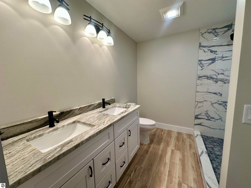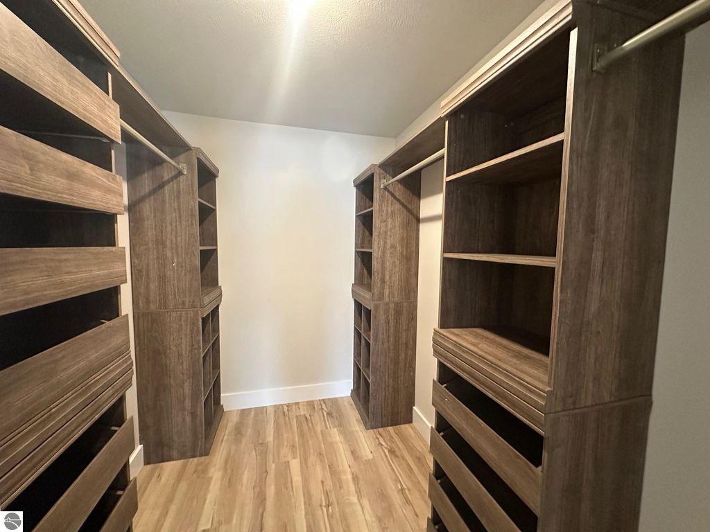 BRAND NEW CONSTRUCTION in nicely wooded setting will be complete May 2026! Spectacular 2 bed 2 bath Ranch with full basement! All the bells and whistles without the enormous price tag! This is true affordable luxury! Featuring open floor plan with vaulted ceilings, one floor living, main floor laundry, natural gas energy star rated furnace and central air, city water and sewer, HUGE private owners suite with walk-in closet and custom tiled shower plus another lovely bath featuring Granite vanity serves the second bedroom. Well appointed kitchen with modern White cabinetry, pantry, pot filler, tile backsplash, and gorgeous luxury vinyl throughout entire home. 24 x 24 attached garage. The full basement is plumbed for another bath and has 2 bright and light egress windows. Enjoy the composite covered front porch and nice back deck. Irrigation, gutters, and lawn hydroseeding included. You can fence in your backyard. Great community with a definite "up north" feel. There is a finished home available to walk-thru as the pictures shown are of the exact exterior but interior shots are of formally completed home. This is Unit #30 on attached plat