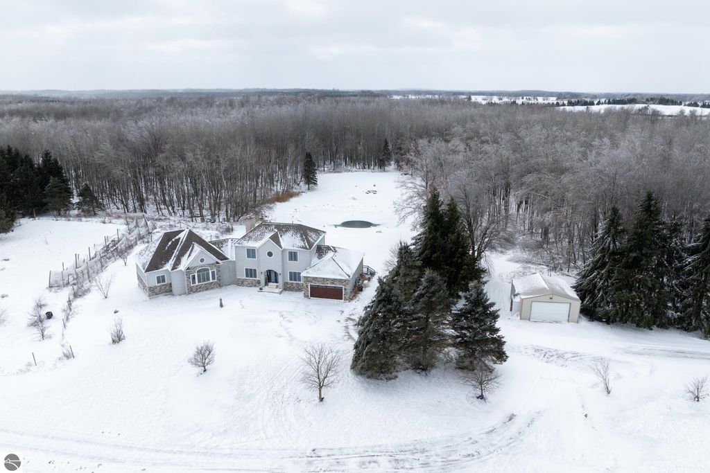 This one-of-a-kind property offers luxury living, recreation, and endless possibilities"”all in a private, breathtaking setting on nearly 50 acres. This expansive home offers 6 bedrooms and 4.5 baths, thoughtfully designed for entertaining, and retreat-style comfort. The main-level primary suite is a true sanctuary, featuring a nursery, two large walk-in closets, and a spa-like bath complete with an infrared sauna, dual shower heads with jets, bidet, and custom cabinetry. There is also an office adjacent to the primary bedroom. Laundry room has a dog bath and a laundry pure system that they use in hospitals. A second upper-level primary suite includes its own fireplace and private bath, creating an ideal guest or extended-family space. The lower level features a spacious family room with walk-out access, wet bar, bedroom, full bath, and abundant storage"”perfect for entertaining or everyday living. Outdoor amenities truly set this property apart, offering nearly 50 acres of natural beauty with established ATV and snowmobile trails, a scenic bridge in the woods, and a stocked pond with deck, electricity, and water pump. Enjoy evenings around the stone firepit with built-in seating and take advantage of the productive vineyard with grapes and raspberries, all surrounded by serene, private surroundings. A standout feature is the 5,000 sq ft pole barn, complete with concrete floors, multiple oversized doors, RV hookups (30 & 50 amp), enclosed vented workshop with keyless entry, plumbing, loft storage, industrial shelving, and a hoist. The property also includes a private Man Cave (24' x 25') with its own heating and cooling, bar with sink, stage, projector and screen, new windows, insulation, and separate keyless entry. Additional highlights include over 2,000 sq ft of unfinished space ready for customization. Experience exceptional privacy, luxury, and versatility in this remarkable estate!