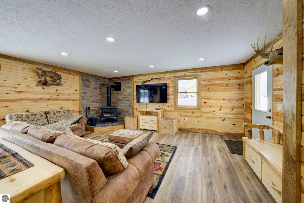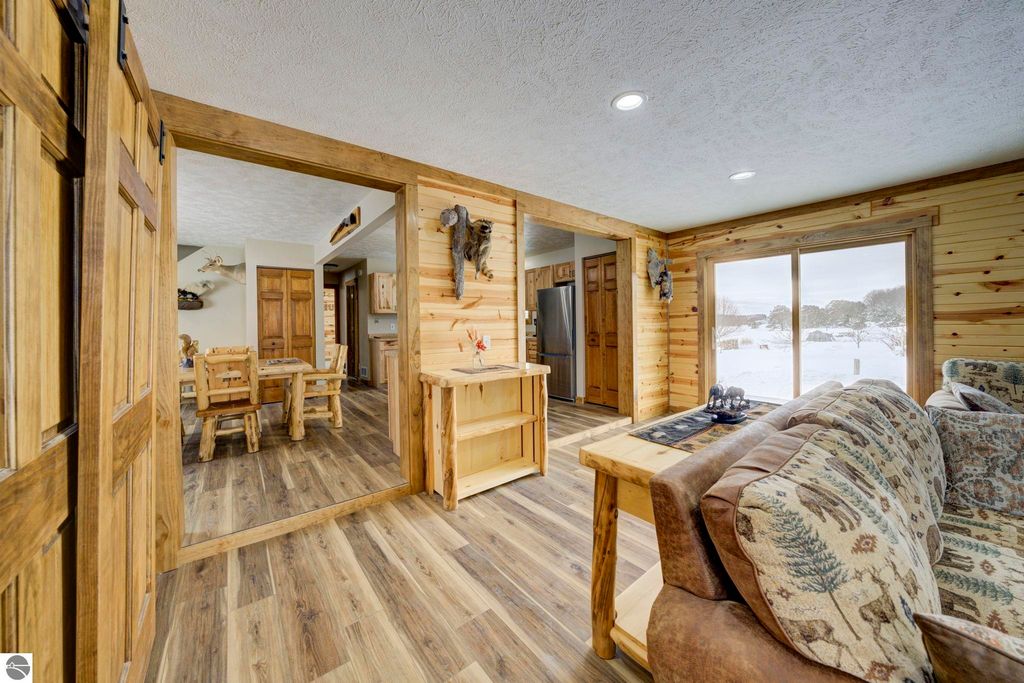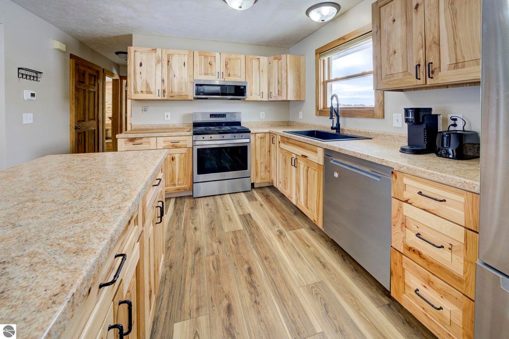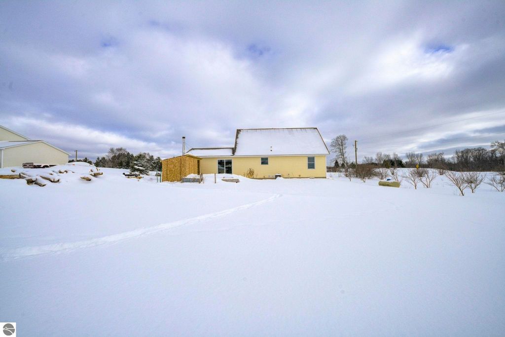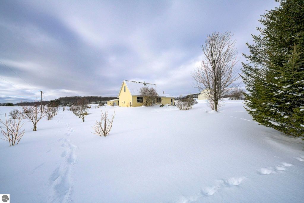 If homesteading or gardening is your passion, this is the home for you! Situated on 2 acres, this recently updated home has pole barn (with water, 220, workshop and WI cooler), garden shed, chicken coop, and wood shed. Garden area is fenced in and has water. 16 fruit trees (peach, pear, apple) with drip irrigation and berry bushes and asparagus beds are already established. Yard has UG sprinklers. Home has been extensively remodeled in 2024-2025 including vinyl siding, garage conversion to great room with wood stove and pine tongue-and-groove, new hickory cabinets in kitchen, new back deck, updated bathroom, LVP, and new carpeting. All windows replaced in 2016 with high-end Jeld-Wen. Located just 30 minutes from Traverse City and 10 minutes from Kingsley.
