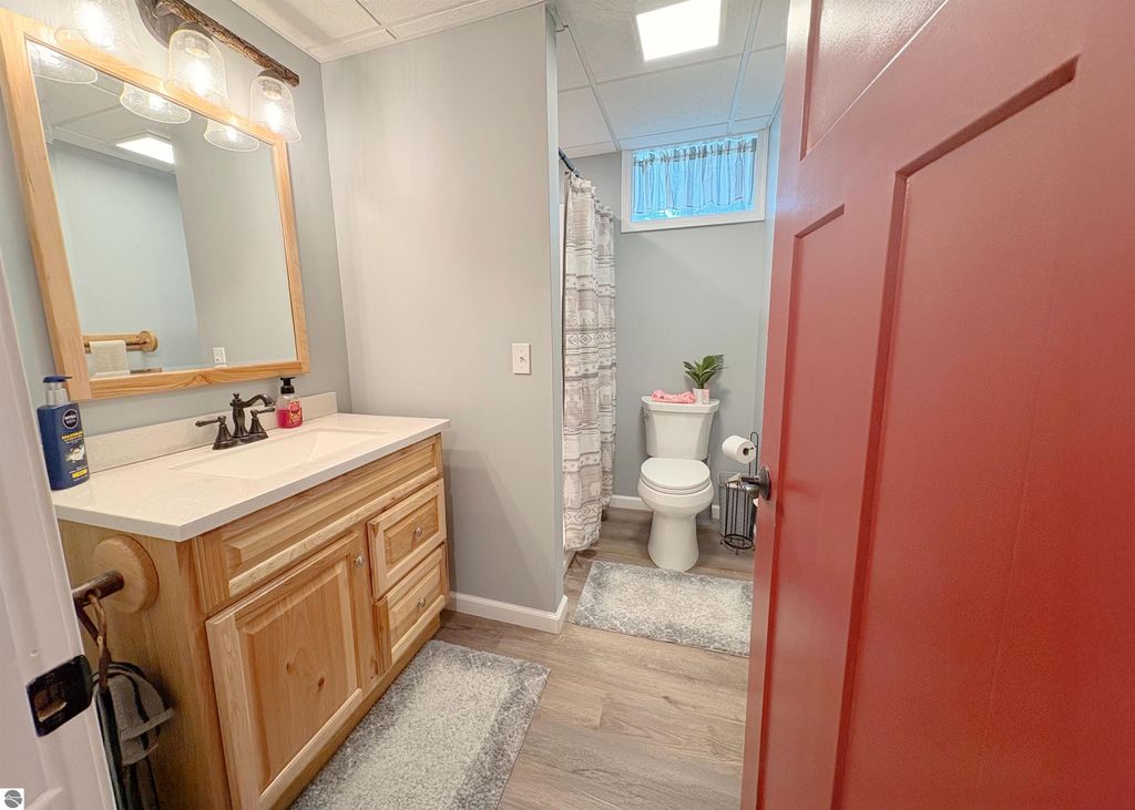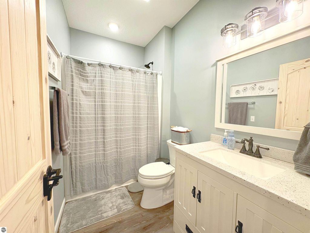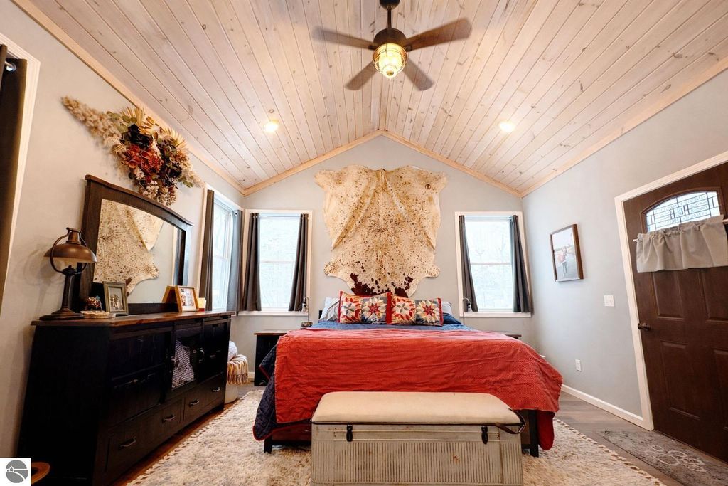 Welcome to this beautifully designed newer construction home located near Lake City, Michigan, offering space, privacy, and modern comfort on a rare 2.26 acre setting in Northern Michigan. Built only a couple of years ago, this property combines thoughtful layout, quality finishes, and a peaceful location that feels secluded while remaining conveniently close to town, just three miles from downtown Lake City. The main home features three spacious bedrooms and three full bathrooms, along with a private mother in law suite or fourth bedroom located off the attached garage. This flexible space is ideal for guests, extended family, or a home office. The open concept main level showcases soaring 16 foot ceilings that create a bright and inviting atmosphere. The living, dining, and kitchen areas flow seamlessly together and are anchored by a beautiful gas fireplace, making the space perfect for everyday living and entertaining. The primary bedroom is generously sized and easily accommodates a California King bed, offering a comfortable retreat. The attached bathroom features dual shower heads and a his and hers vanity, blending comfort and functionality. The fully finished basement adds exceptional living and entertaining space. It includes a bar area and a theater room setup, ideal for hosting gatherings or enjoying movie nights at home. The basement also features an additional bedroom and full bathroom, along with a large gun safe that is included with the property. Outside, the home sits on 1.53 acres with an additional attached 0.73 acre parcel, totaling 2.26 acres of usable land. Tucked well off the road, the property offers privacy and quiet with no traffic noise, while still providing quick access to Lake City shopping, dining, schools, and local lakes. This is a rare opportunity to own a nearly new home near Lake City that delivers modern design, spacious living, and peaceful surroundings while staying close to everything Northern Michigan has to offer.