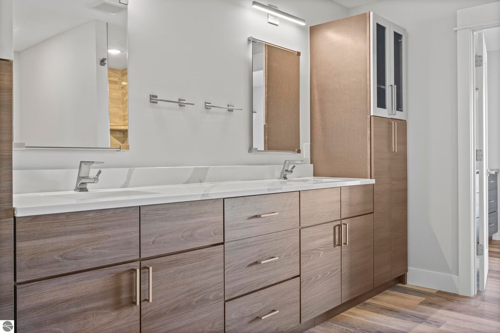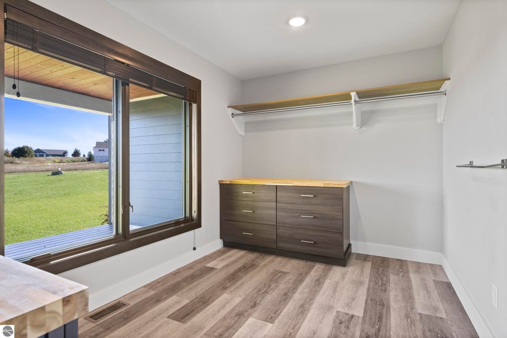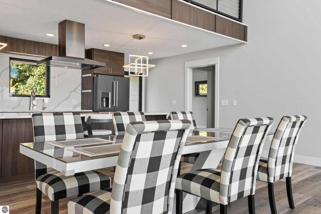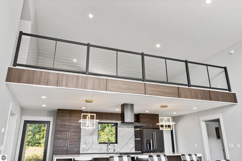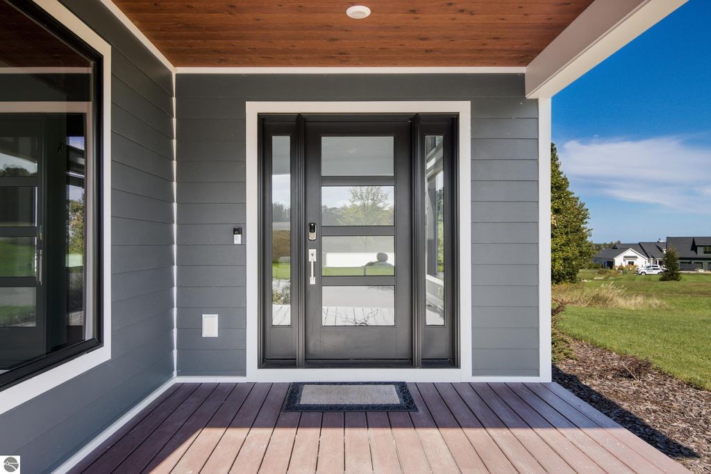 Surrounded by the natural beauty of Leelanau County, this contemporary Bay Hill home is designed for those who appreciate both style and serenity. Every detail"”inside and out"”reflects thoughtful craftsmanship and a connection to the landscape that defines Northern Michigan living. Step through the front door and feel the light. Soaring ceilings and a wall of windows frame views of the trees and sky, filling the open living space with warmth and energy. Whether it's a holiday gathering, a cozy movie night, or a quiet morning with coffee, this home offers the perfect setting for every season of life. The kitchen was designed with both elegance and function in mind, featuring floor-to-ceiling cabinetry, a large island, and double dishwashers"”making it as practical as it is beautiful. The main floor includes well-placed bedrooms and baths, while upstairs, a loft and flexible bonus room open to wide views of the Leelanau countryside, ideal for an office, guest suite, or creative retreat. Downstairs, the finished lower level expands the home's versatility. Part of the space is currently set up for a golf simulator"”perfect for the enthusiast"”but could easily become a home theater, workout room, or additional living area. Outside, the backyard feels like a private haven, bordered by common area for added privacy. A stamped concrete patio, built-in fire pit, and cedar playset make it a space for gathering, relaxing, and enjoying starlit nights under the Northern sky. Located between Lake Leelanau and Leland, and just minutes from Suttons Bay, you're perfectly positioned to enjoy all that makes this region so beloved"”Good Harbor Beach, local wineries, golf courses, and charming small-town shops and eateries. With generous living areas, bright open spaces, and a setting that reflects the heart of Leelanau, this home is ready to welcome you Up North.