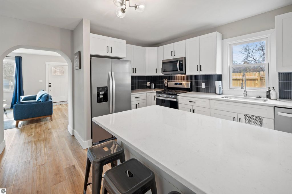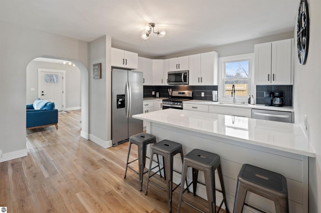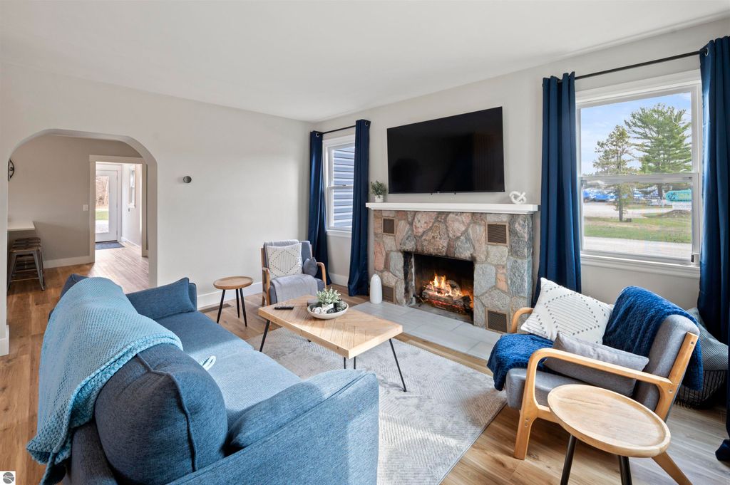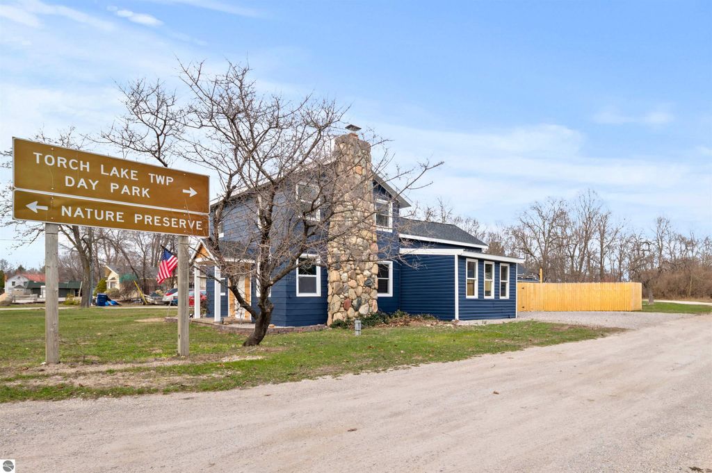 Prime location just steps from Torch Lake access and the shores of East Grand Traverse Bay! This beautifully updated property is situated in the heart of the business district, offering flexibility for a variety of uses. Zoned to allow short-term rentals with a transferable permit, it's an ideal opportunity for boutique lodging, second home, or a year-round residence. Inside, you'll find a fully renovated home, complete with new kitchen and bathrooms, and a cozy gas fireplace that adds warmth and charm. Move-in ready and available turnkey, this versatile property combines stylish design with investment potential in one of Northern Michigan's most desirable corridors.