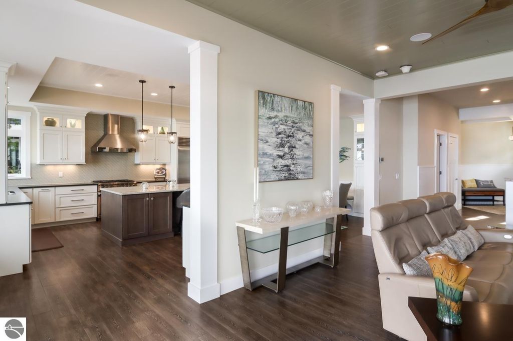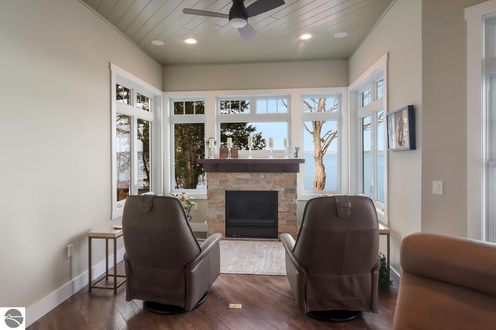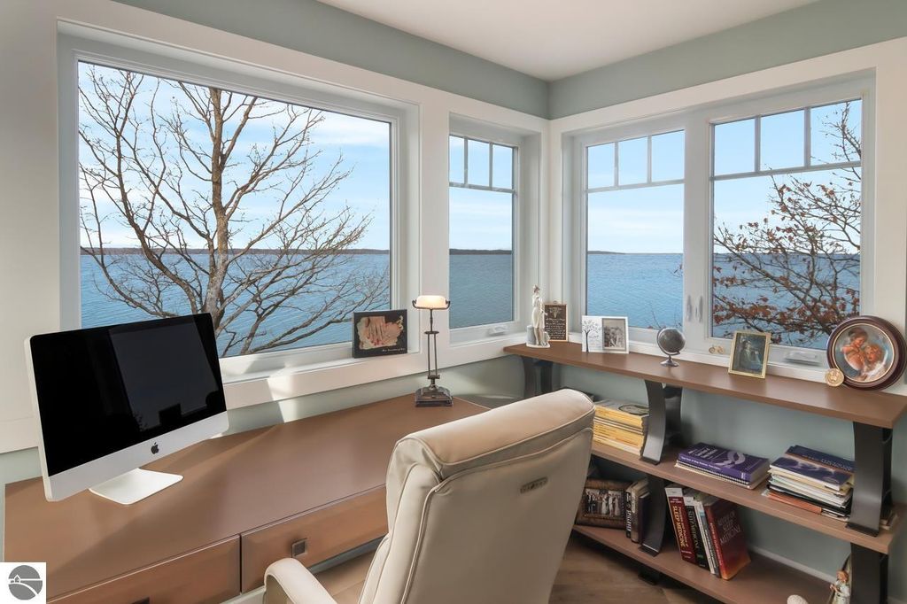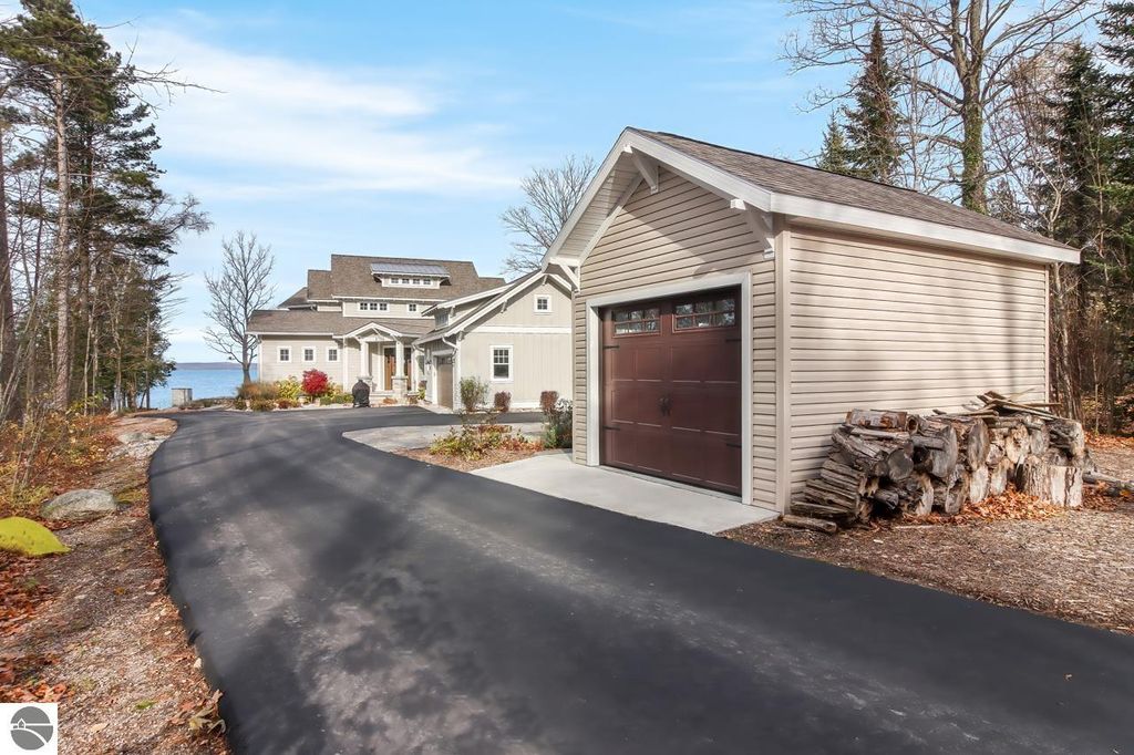 Escape to your own private oasis on West Grand Traverse Bay with this exquisite Craftsman home built in 2016. Boasting 4 bedrooms, 3.5 bathrooms, and over 4,500 square feet of living space, this two-story beauty offers the ultimate in waterfront living. Situated on a spacious 0.71-acre lot, this property features 100 feet of private direct water access and a sandy beach perfect for enjoying the stunning sunsets over the bay. Step inside to discover a thoughtfully designed layout with high-end finishes and expansive water views from nearly every room. The open concept living areas are perfect for entertaining guests, while the tranquil surroundings provide a peaceful retreat from the outside world. Whether you're relaxing on the deck or taking a stroll along the tree-lined road, this beachfront paradise offers the perfect blend of luxury and serenity. Don't miss your chance to experience the lifestyle you've always dreamed of - schedule a showing today and see for yourself the beauty of this waterfront gem. Visit our website for more information.