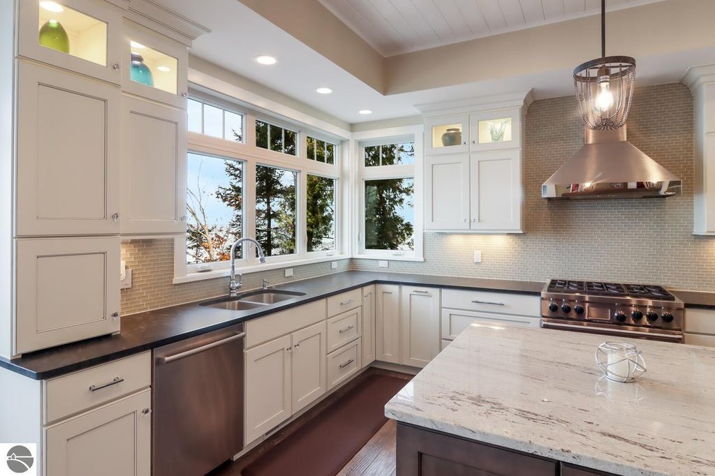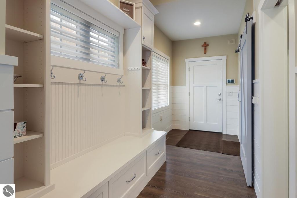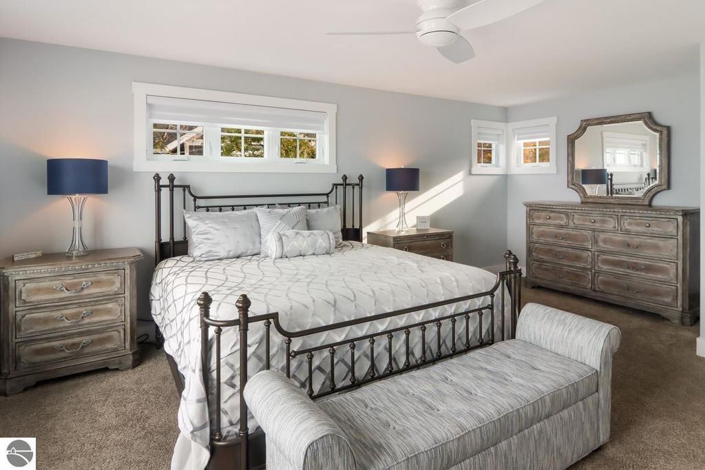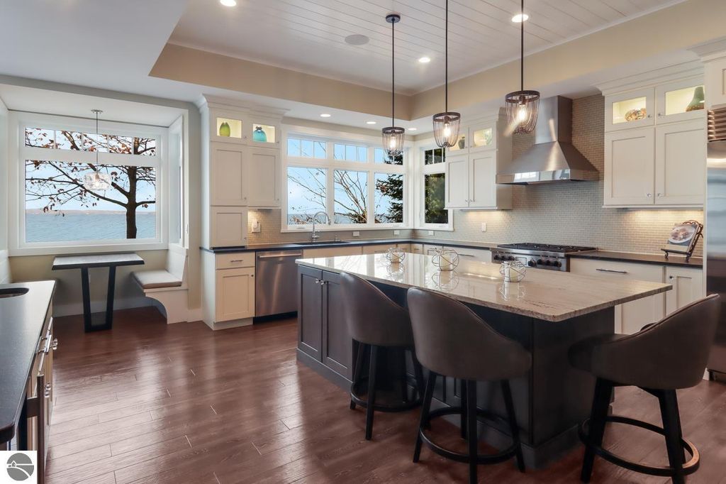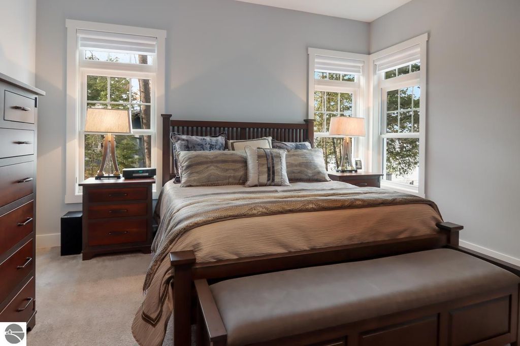 Escape to your own private oasis on West Grand Traverse Bay with this exquisite Craftsman home built in 2016. Boasting 4 bedrooms, 3.5 bathrooms, and over 4,500 square feet of living space, this two-story beauty offers the ultimate in waterfront living. Situated on a spacious 0.71-acre lot, this property features 100 feet of private direct water access and a sandy beach perfect for enjoying the stunning sunsets over the bay. Step inside to discover a thoughtfully designed layout with high-end finishes and expansive water views from nearly every room. The open concept living areas are perfect for entertaining guests, while the tranquil surroundings provide a peaceful retreat from the outside world. Whether you're relaxing on the deck or taking a stroll along the tree-lined road, this beachfront paradise offers the perfect blend of luxury and serenity. Don't miss your chance to experience the lifestyle you've always dreamed of - schedule a showing today and see for yourself the beauty of this waterfront gem. Visit our website for more information.