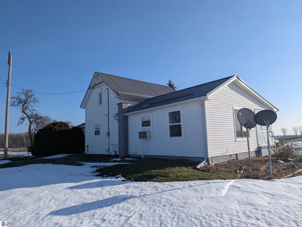 A beautiful three acre parcel with a countryside view that goes for miles! This vintage farmhouse has tons of character and offers cozy living. The home features two bedrooms, 1.25 baths, some hardwood floors, a main level bedroom w/ laundry, metal roof, newer well, some newer windows, updated electrical panel, and newer furnace. The grounds offer fruit trees, perennials, & lots of green space overlooking the surrounding farm fields. For storage, there is are two outbuildings right by the home including one that is wood heated, but a huge bonus to this property is just across the lawn and with it's own driveway, is 24x32 garage w/ 12x20 attached addition that features it's own well and septic! Sitting along a paved and maintained road for all season living and located close to Standish, M-76, I-75, West Branch, etc for added convenience!