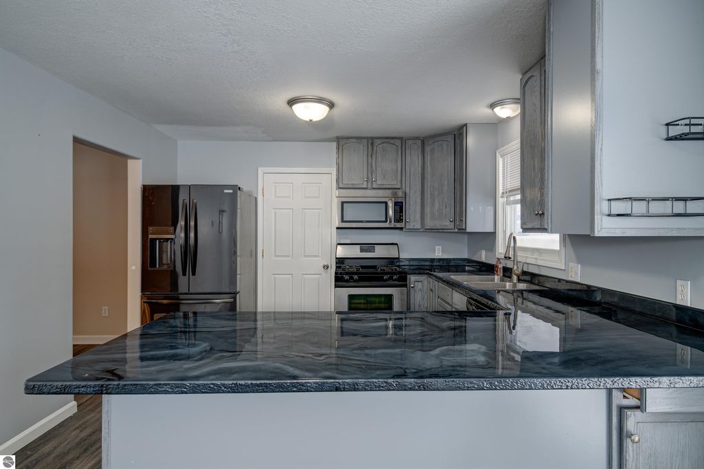 Fantastic location in Kalkaska and truly move-in ready! This inviting home offers 1,440 square feet on the main level with an additional 1,440 square feet in the lower level, totaling 2,880 square feet of living space. The main floor features three bedrooms and one full bath. The home has been thoughtfully updated from top to bottom, with recent 2025 improvements including a new roof, vinyl plank flooring on the main level, a new air conditioner, a new water heater, and a 6-foot vinyl privacy fence. The bright, clean lower level provides excellent storage or additional living space and includes a fourth non-conforming bedroom or office space. Situated on a spacious corner lot, the home also features a new drainfield, generous yard and a welcoming covered front porch. Located just outside the village limits, you'll enjoy convenient access to local schools, the hospital and nearby state land"”perfect for outdoor enthusiasts. A wonderful blend of comfort, updates, and convenience.